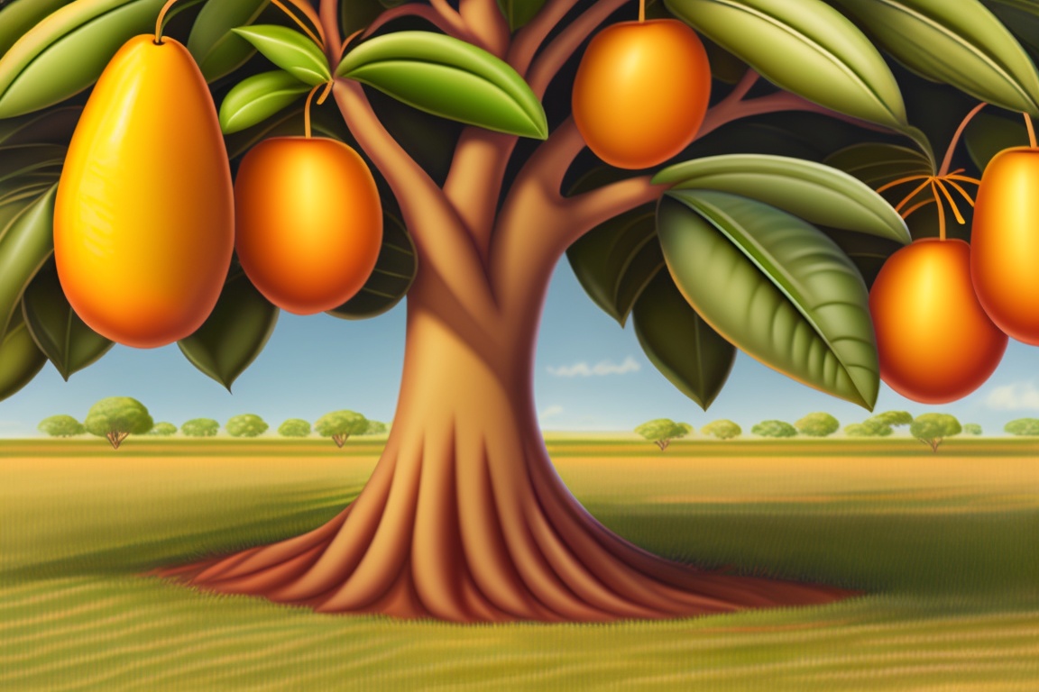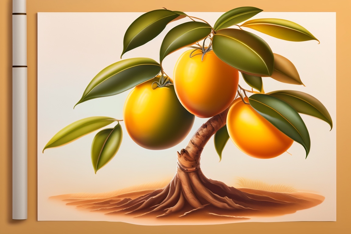 Draw a picture of a young mango tree with big