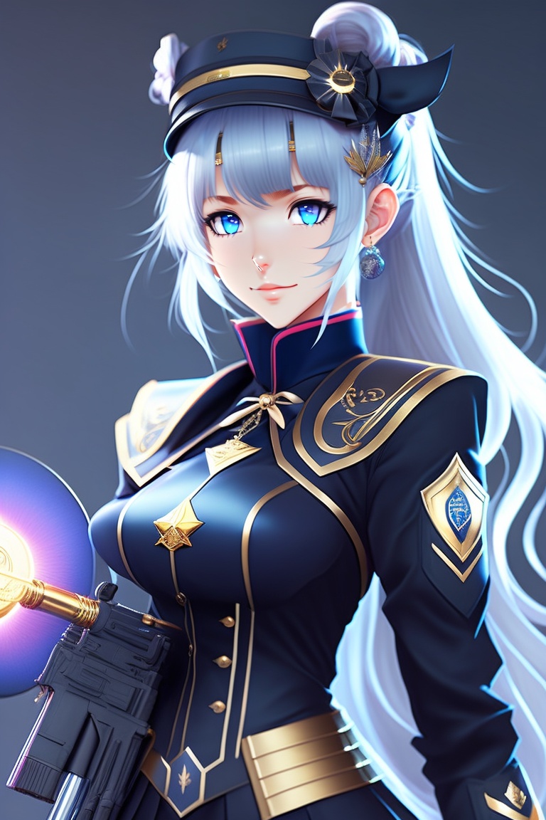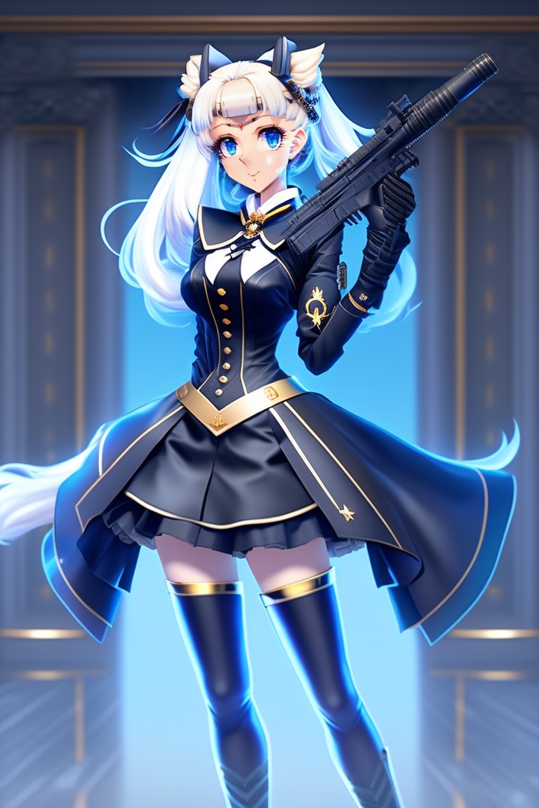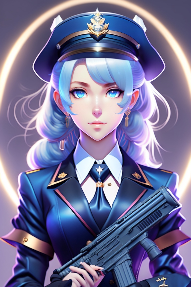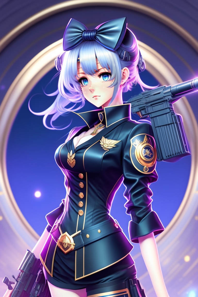 Sailor moon, a girl in a black and blue sailor suit with a machine gun in her hands, look at the camera, neoclassicism, anime style, chiaroscuro, first-person view, anatomically correct, uhd, textured skin, award winning, high details, hd, 16k