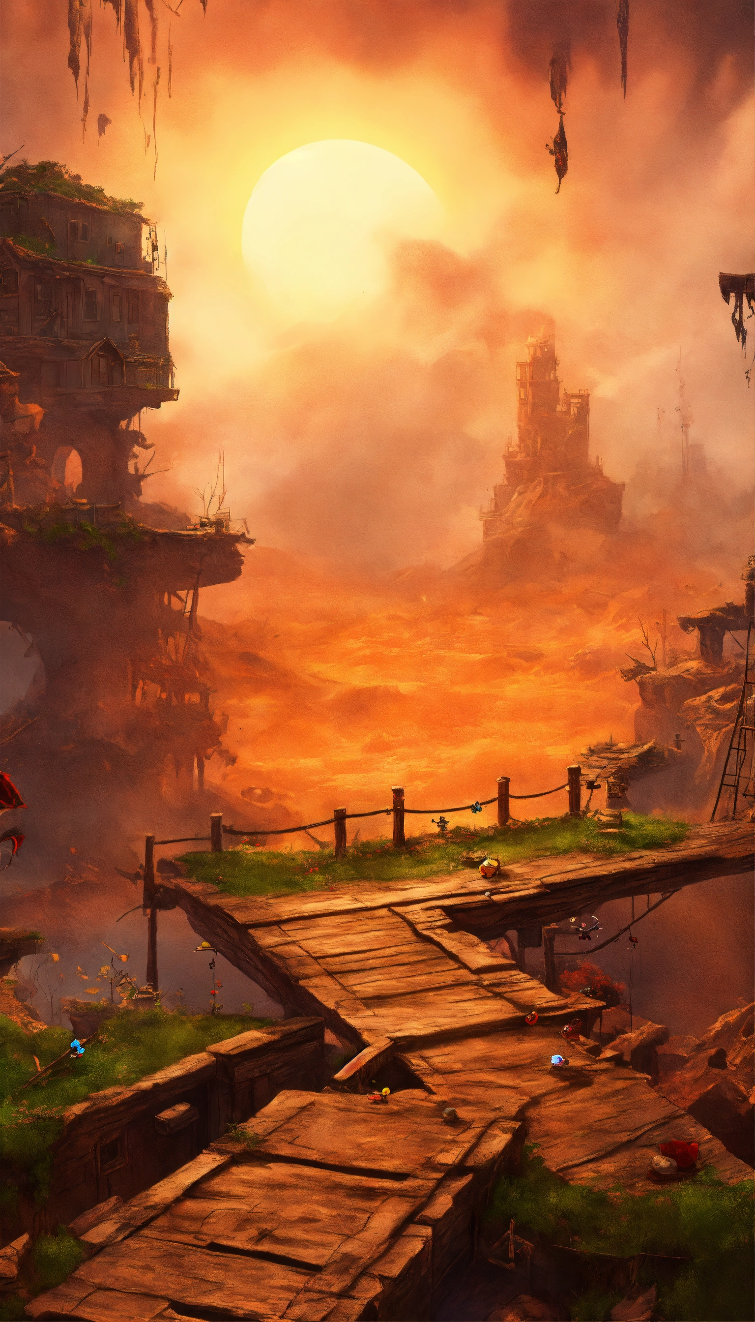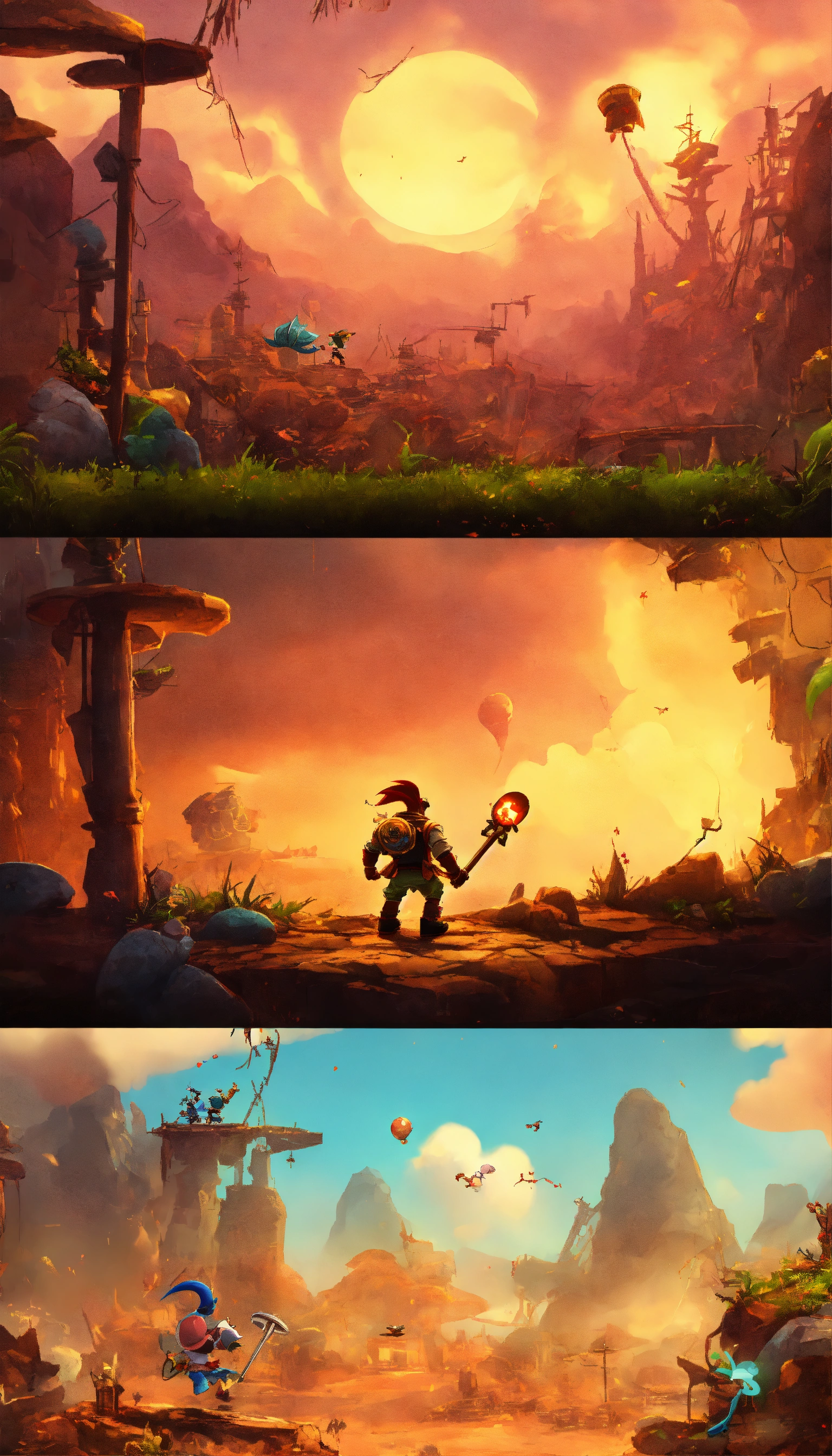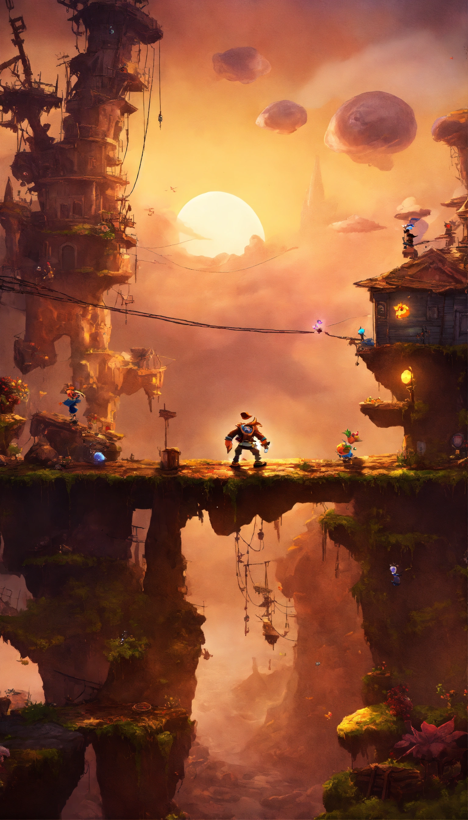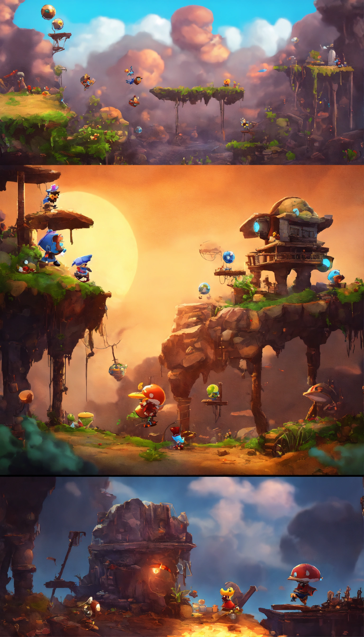 2d rayman-style platform game with hyper realistic 8k apocalypse scenes
