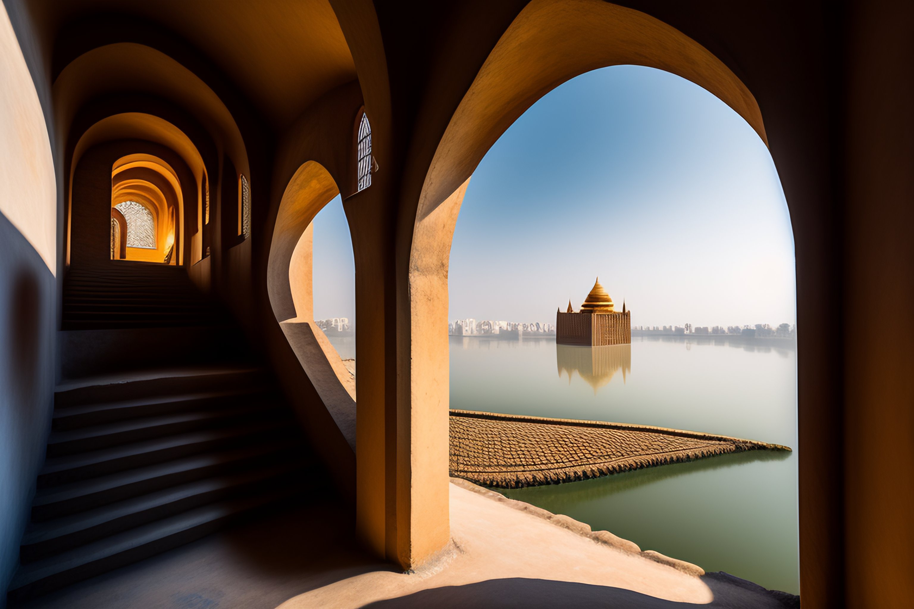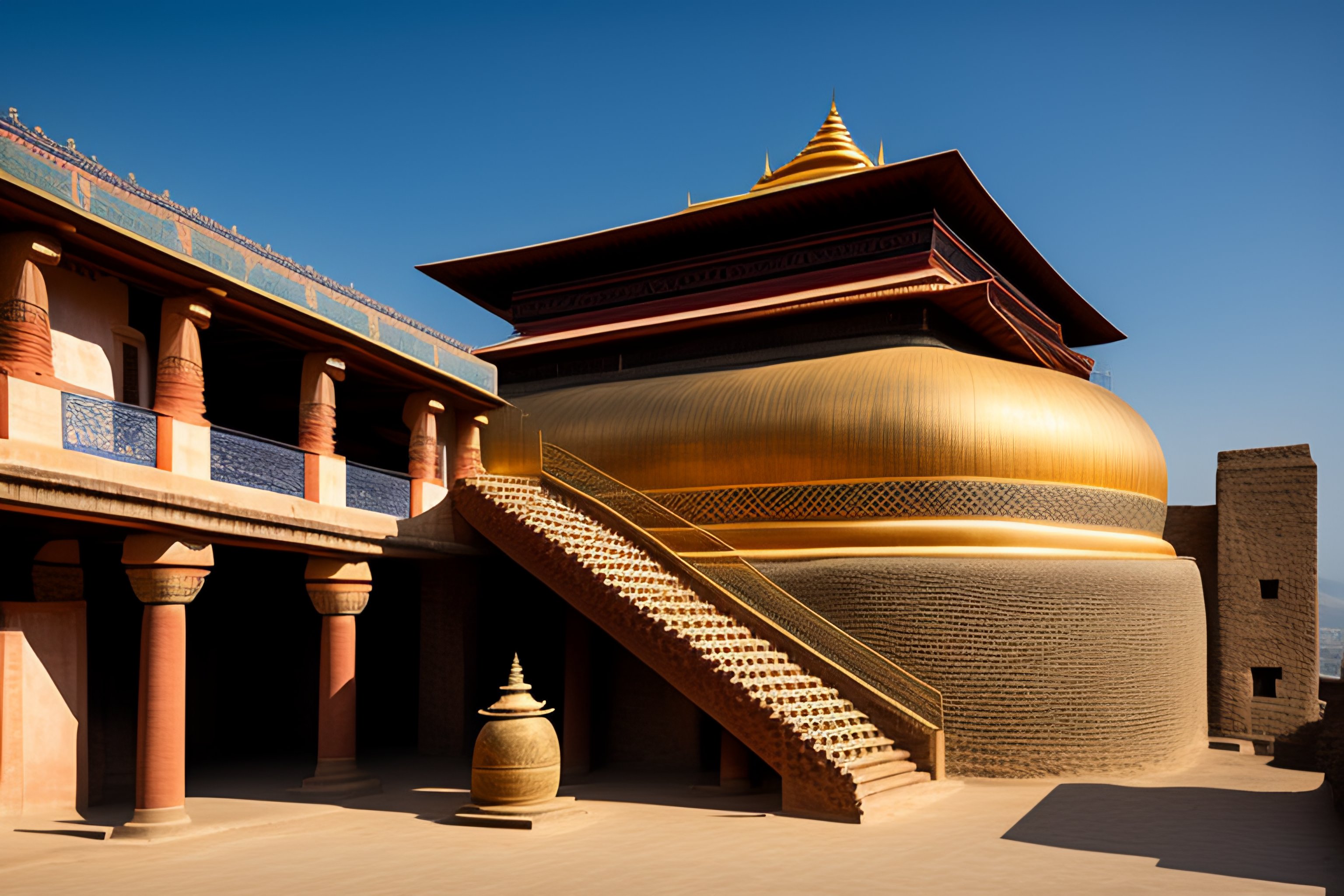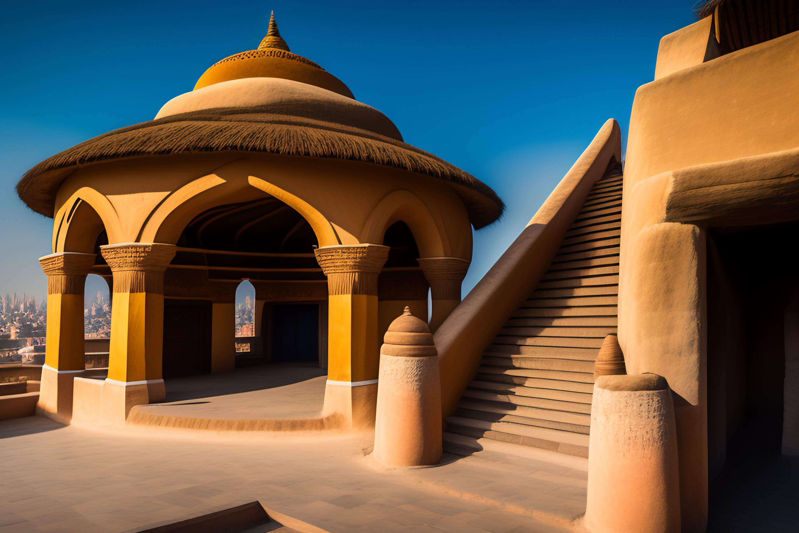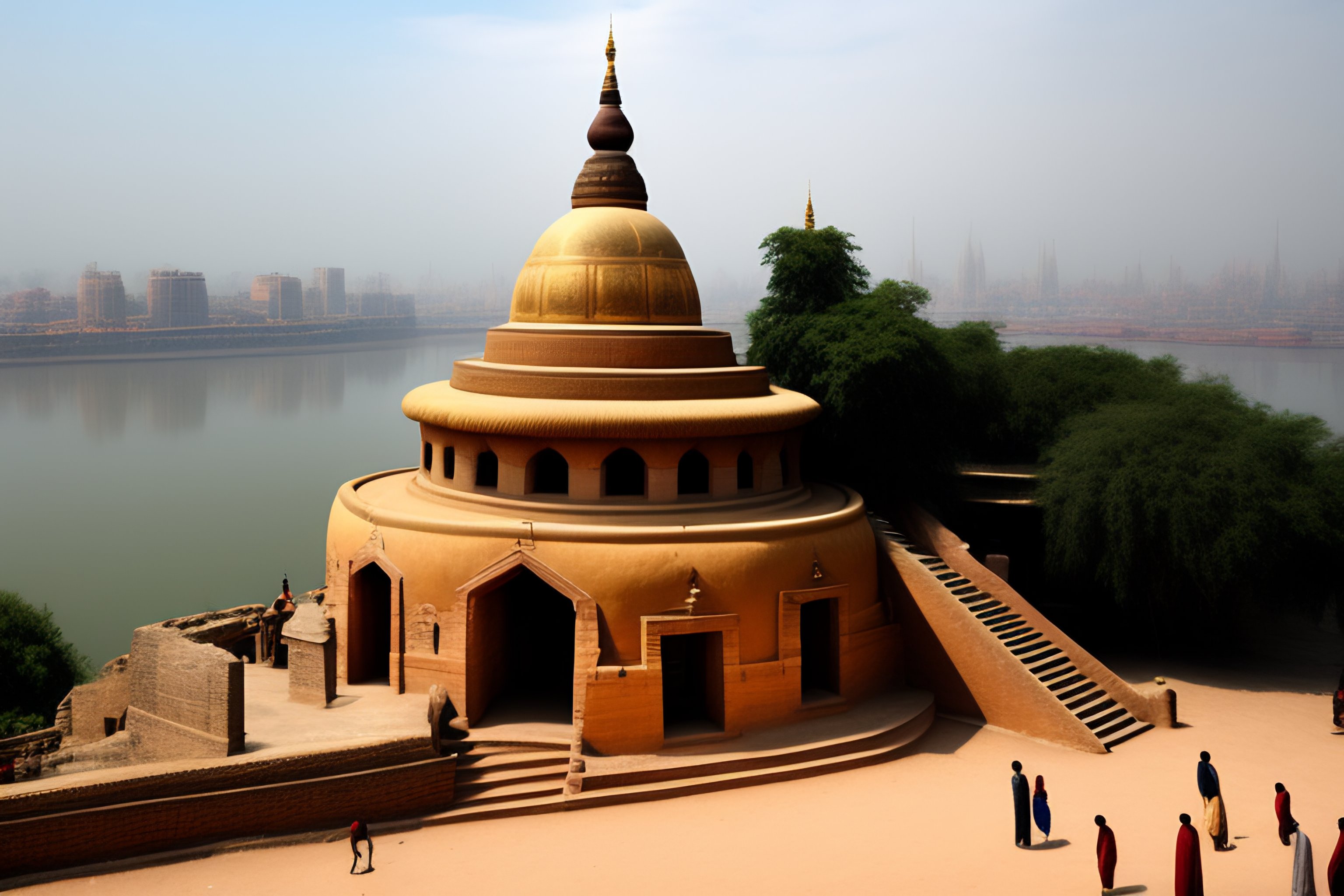 Built in the stupa architecture, the building has a height of 29 m. it is pillar-less with a wall of thickness of 3.6 m at the base. one can climb to the top of the golghar via its 145-step spiral stairway. the spiral staircase was designed to facilitate the passage of the workers who loaded and unloaded the grain in the granary, who had to carry grain-bags up one flight, deliver their load through a hole at the top, and descend the other stairs. the top of the golghar presents a panoramic view of the city and the ganges.