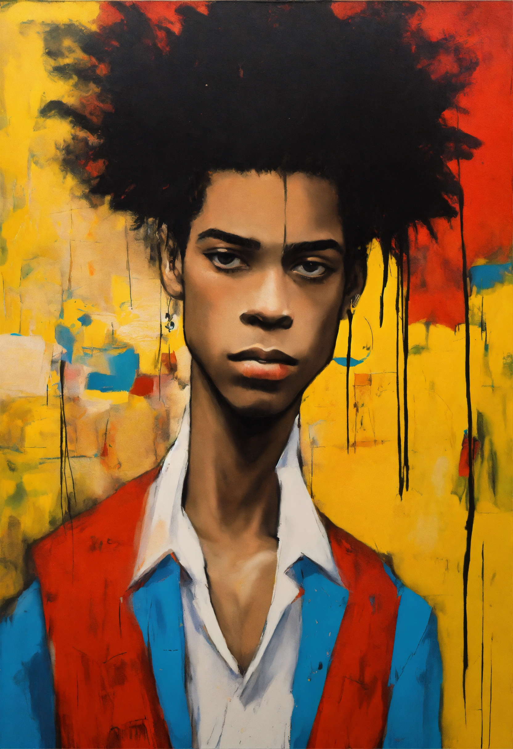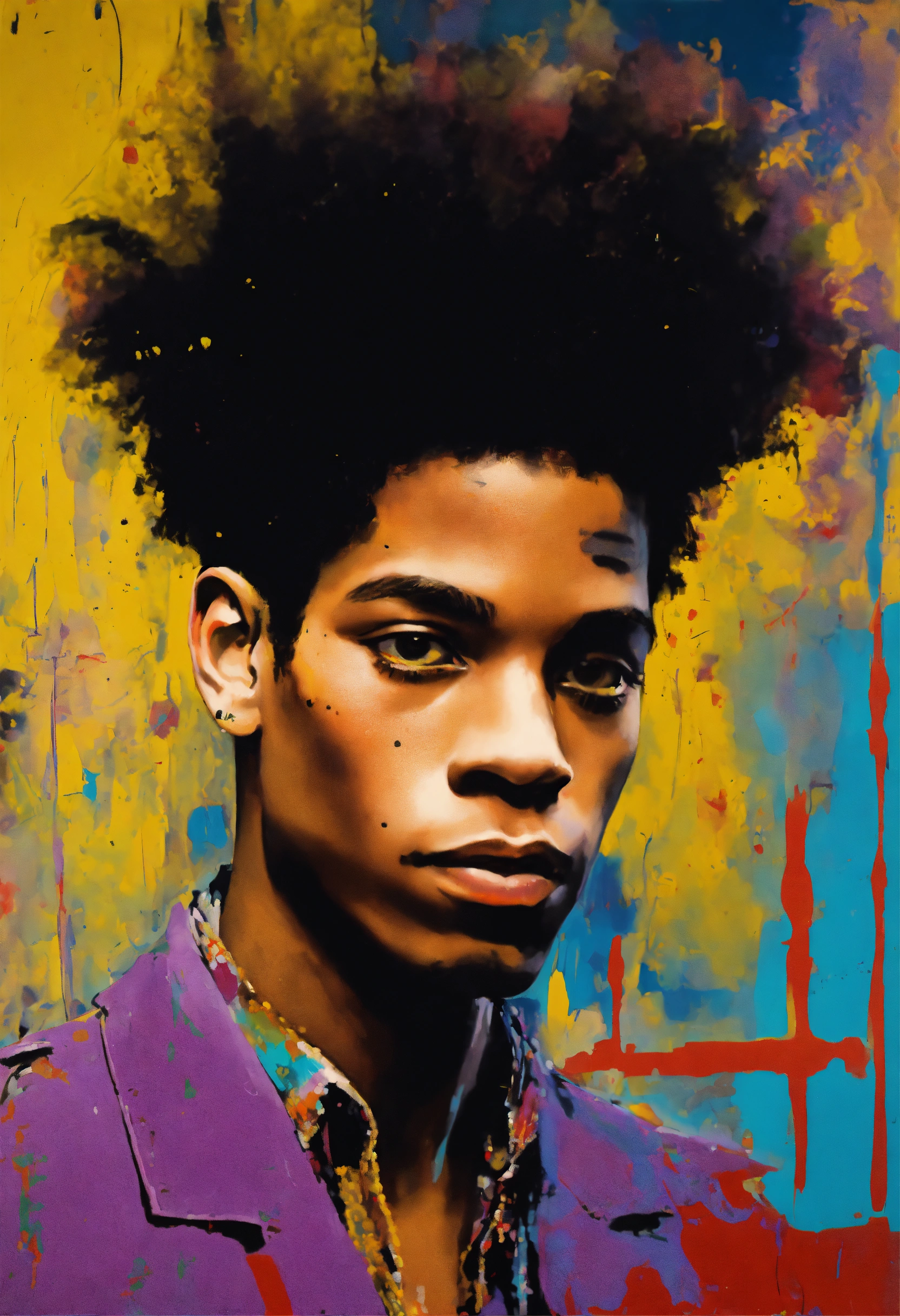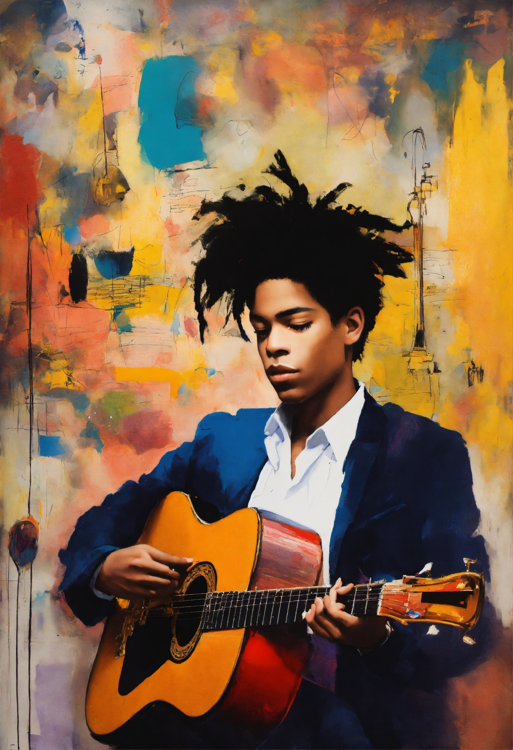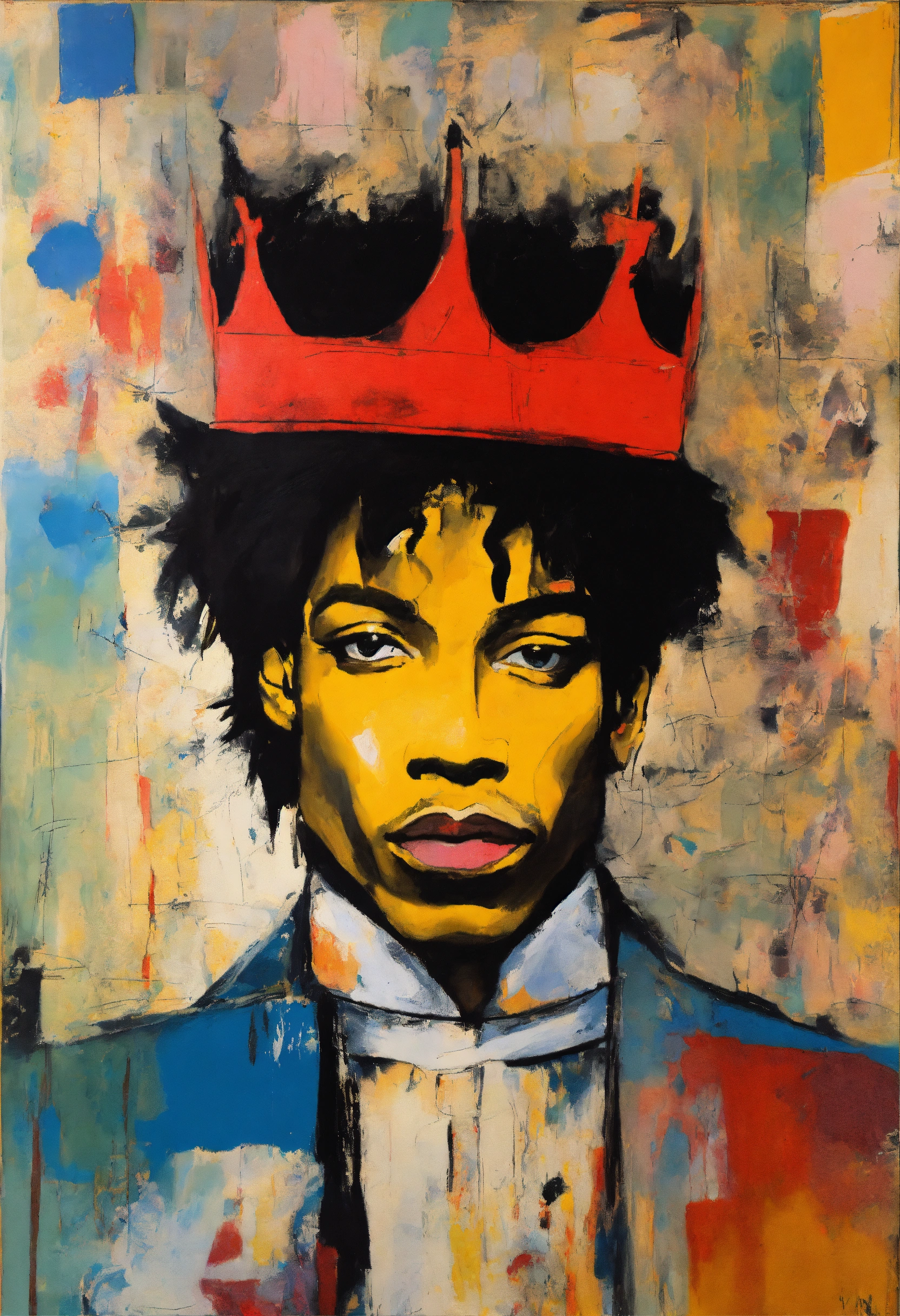 Create an neo-expressionist painting inspired by jean michael basquiat and blend it with the style of georges lepape drawings - create a painting of prince the musician