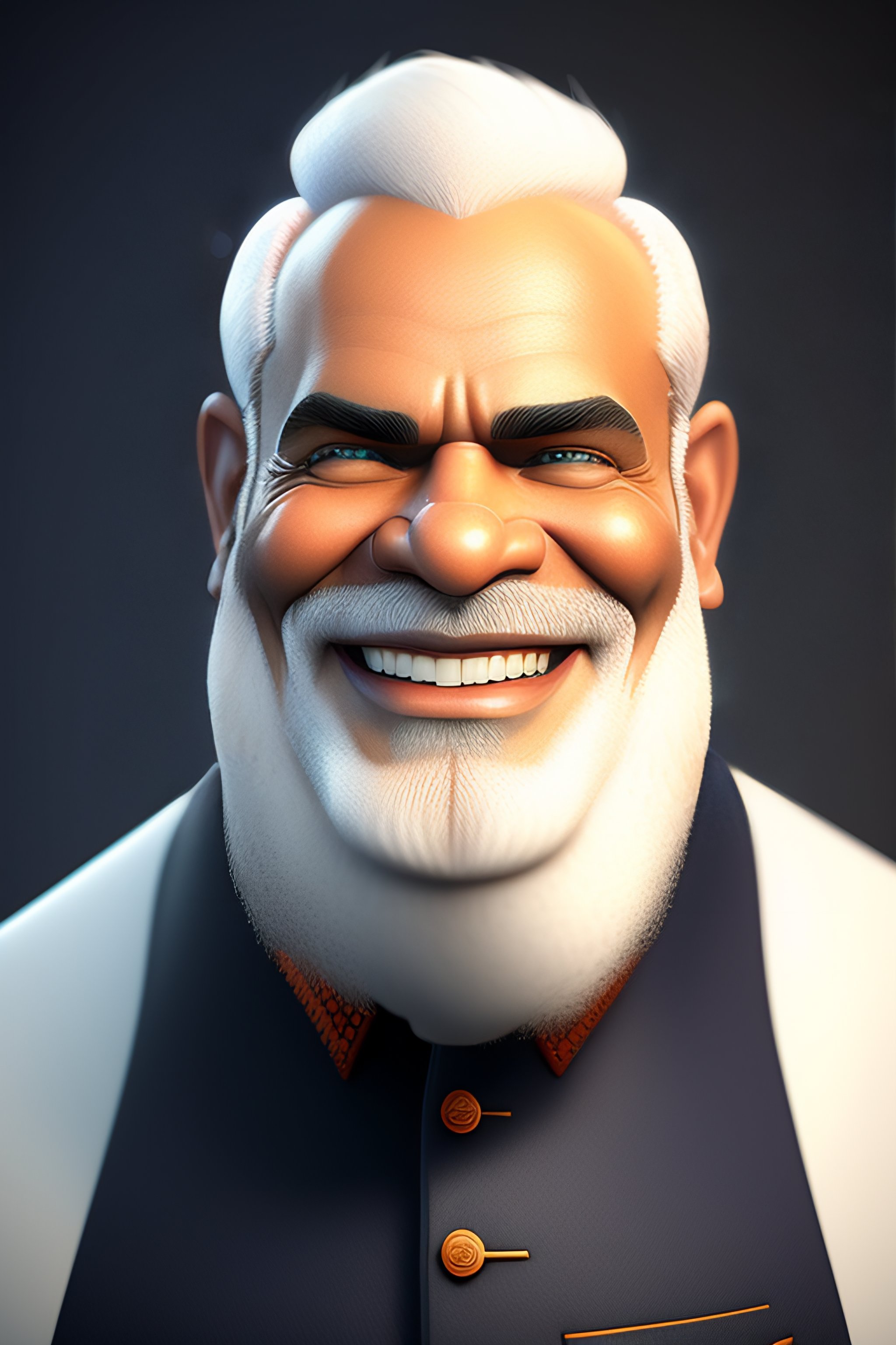 Caricature 3d render of narendra modi smiling, exaggerated features, highly detailed, arnold render, zbrush artwork by gabriel soares, instagram, artstation