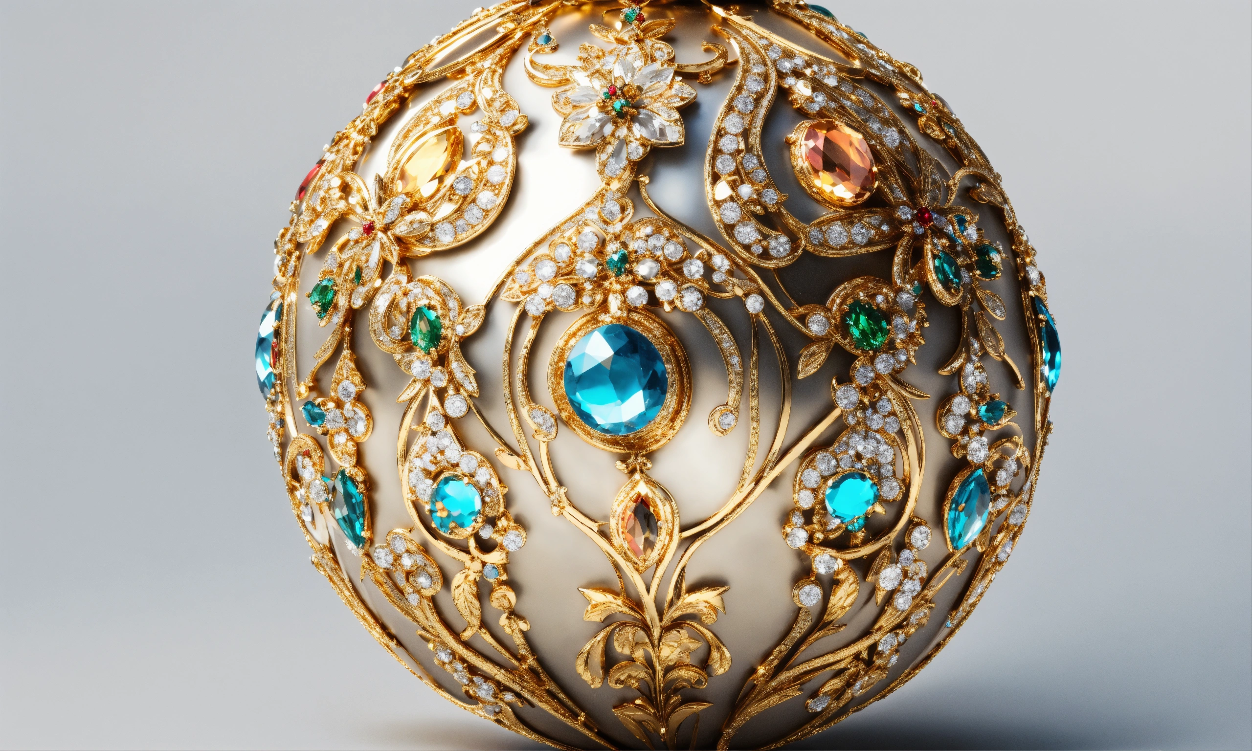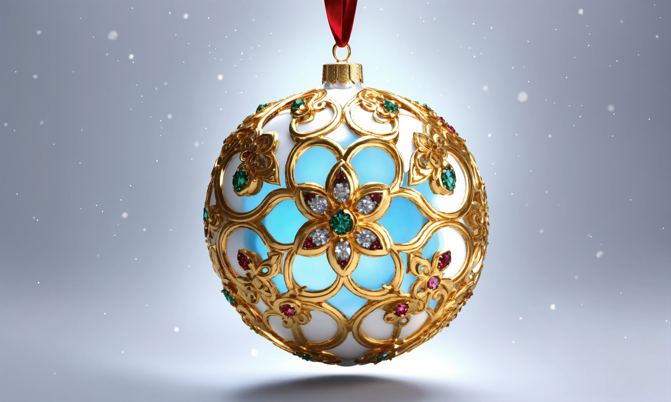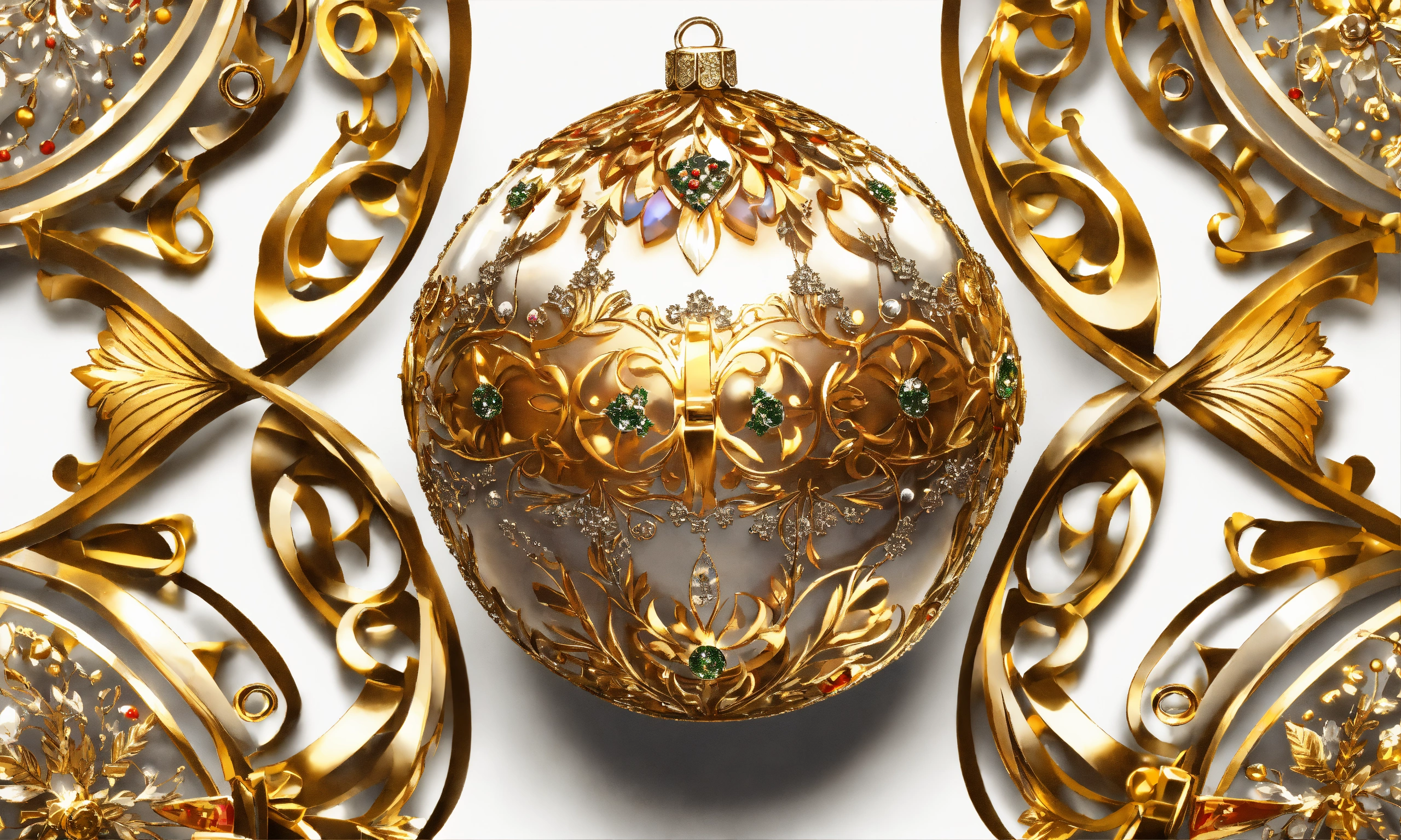 Christmas ornament clipart, white background, intricate and detailed, gold, jewels, mother of perl, 8k, ultra-detailed, sharp focus