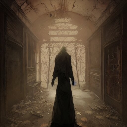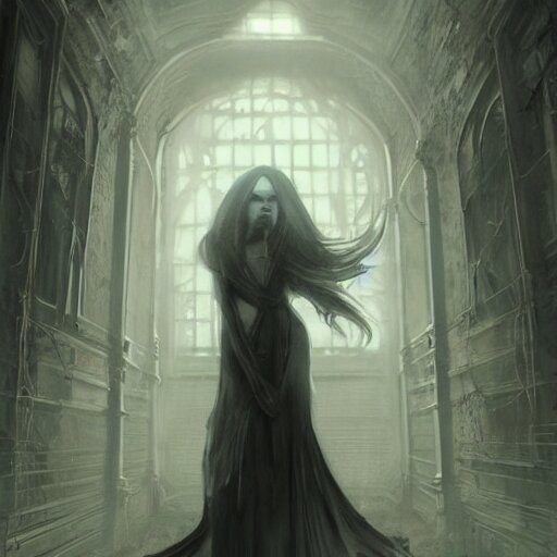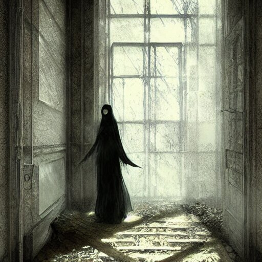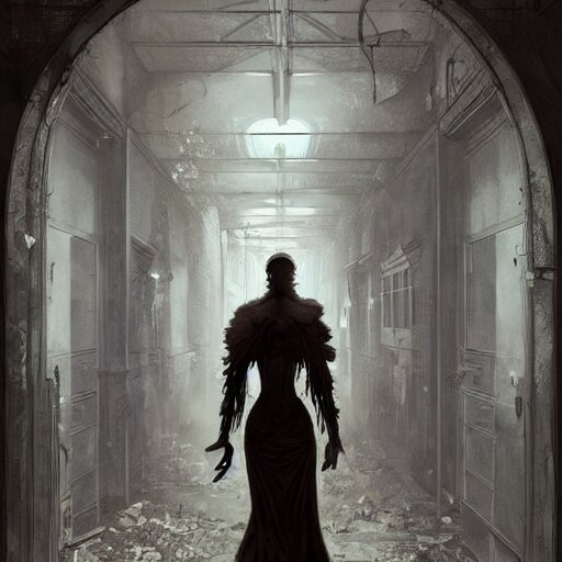 Shadowy spirit in abandoned hospital hallway, horror, creepy, intricate, elegant, highly detailed, digital painting, artstation, concept art, smooth, sharp focus, illustration, art by artgerm and greg rutkowski and alphonse mucha