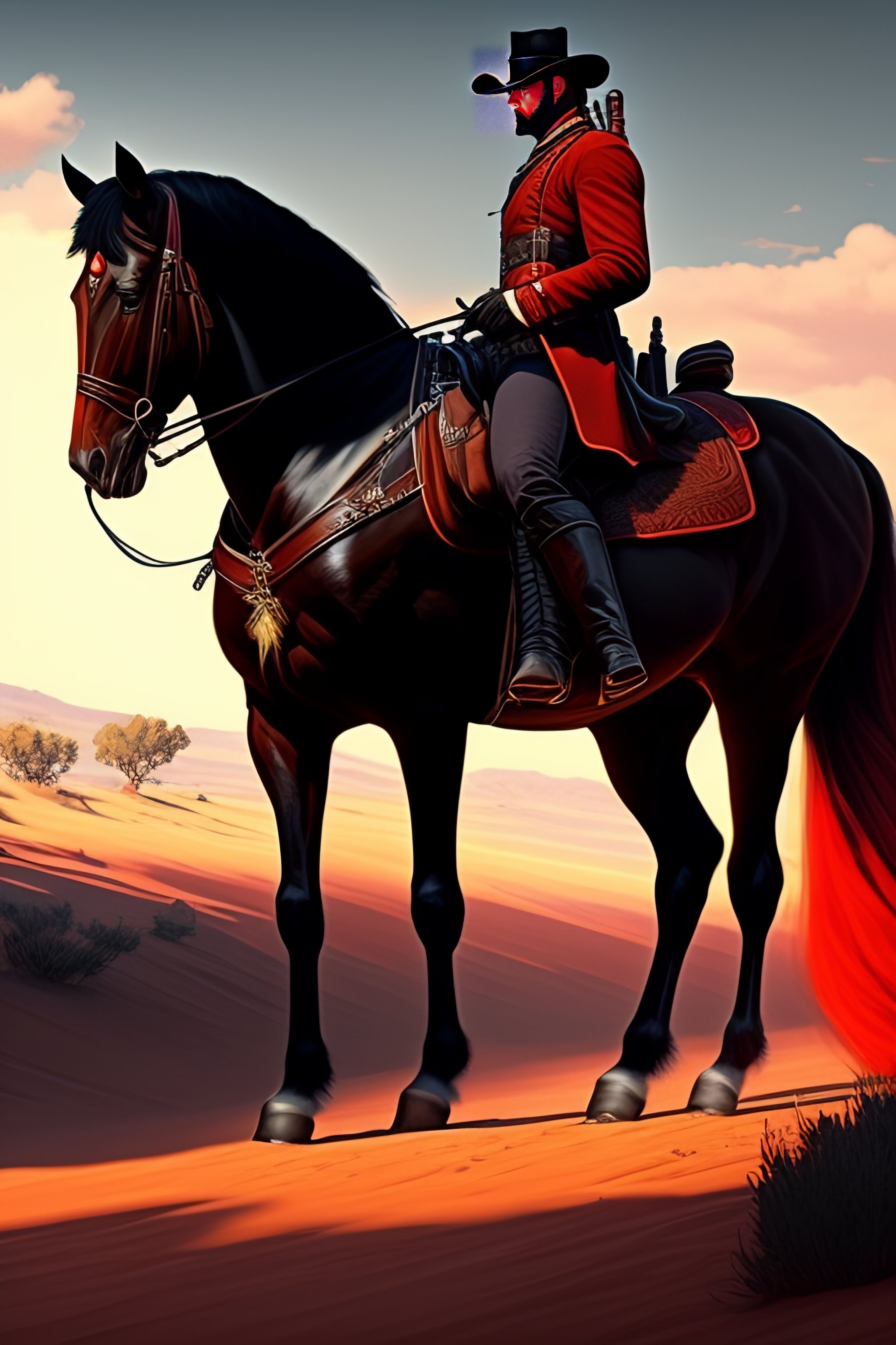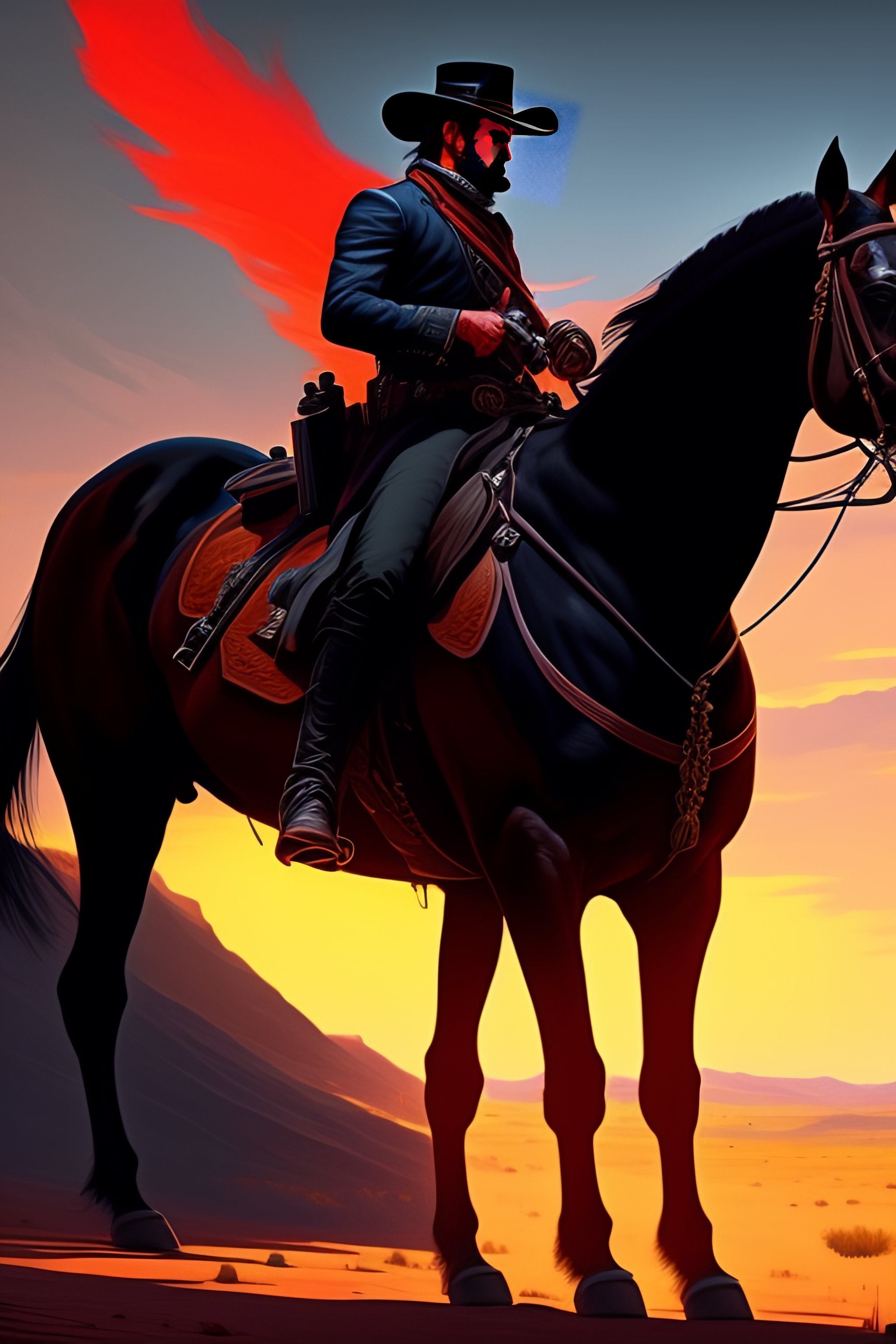 A beautiful artwork illustration, red dead redemption 2, high contrast, high contrast, high contrast, vibrant colors, vivid colors, high saturation, by greg rutkowski and jesper ejsing and raymond swanland, featured on artstation, wide angle, vertical orientation