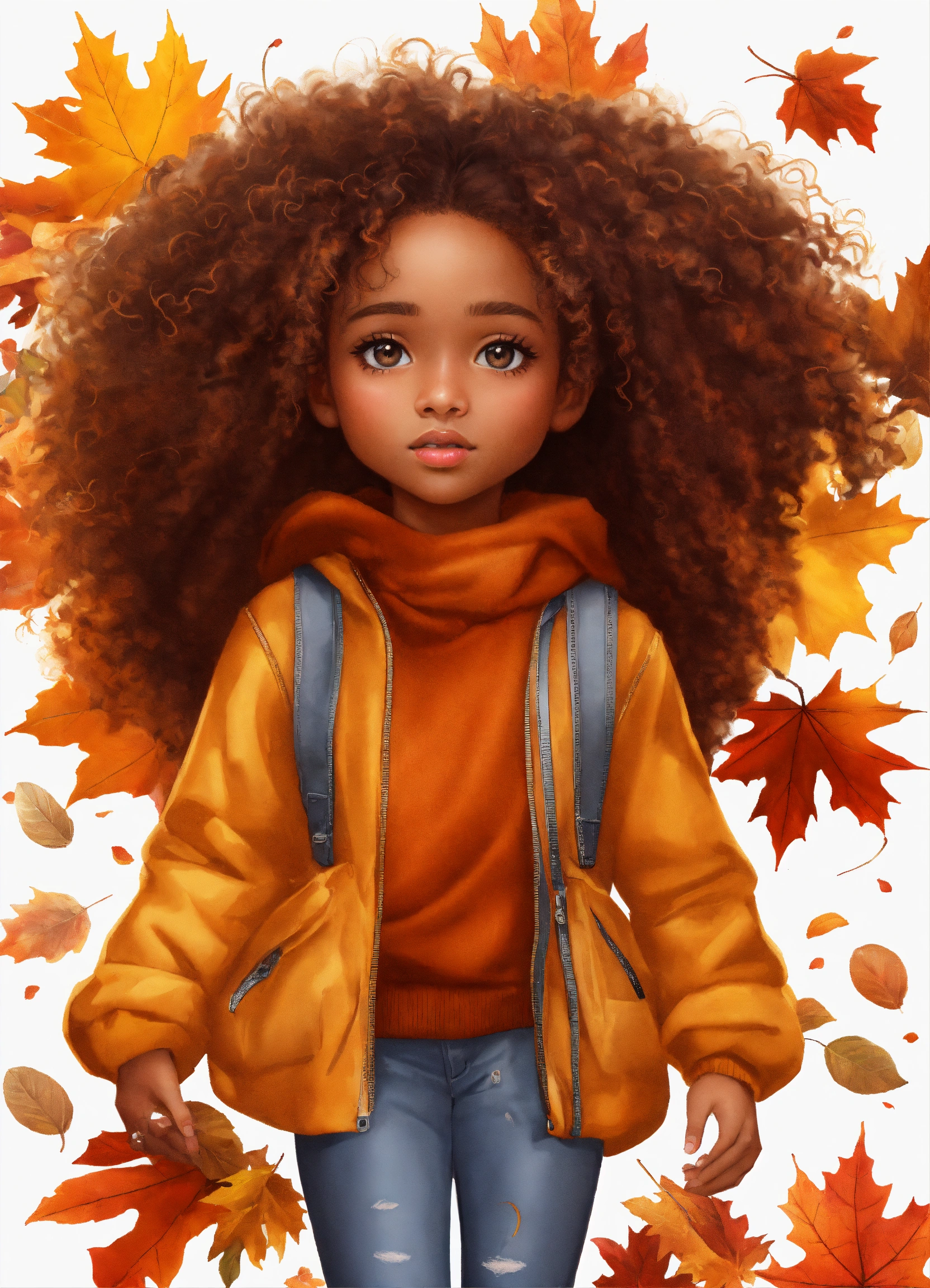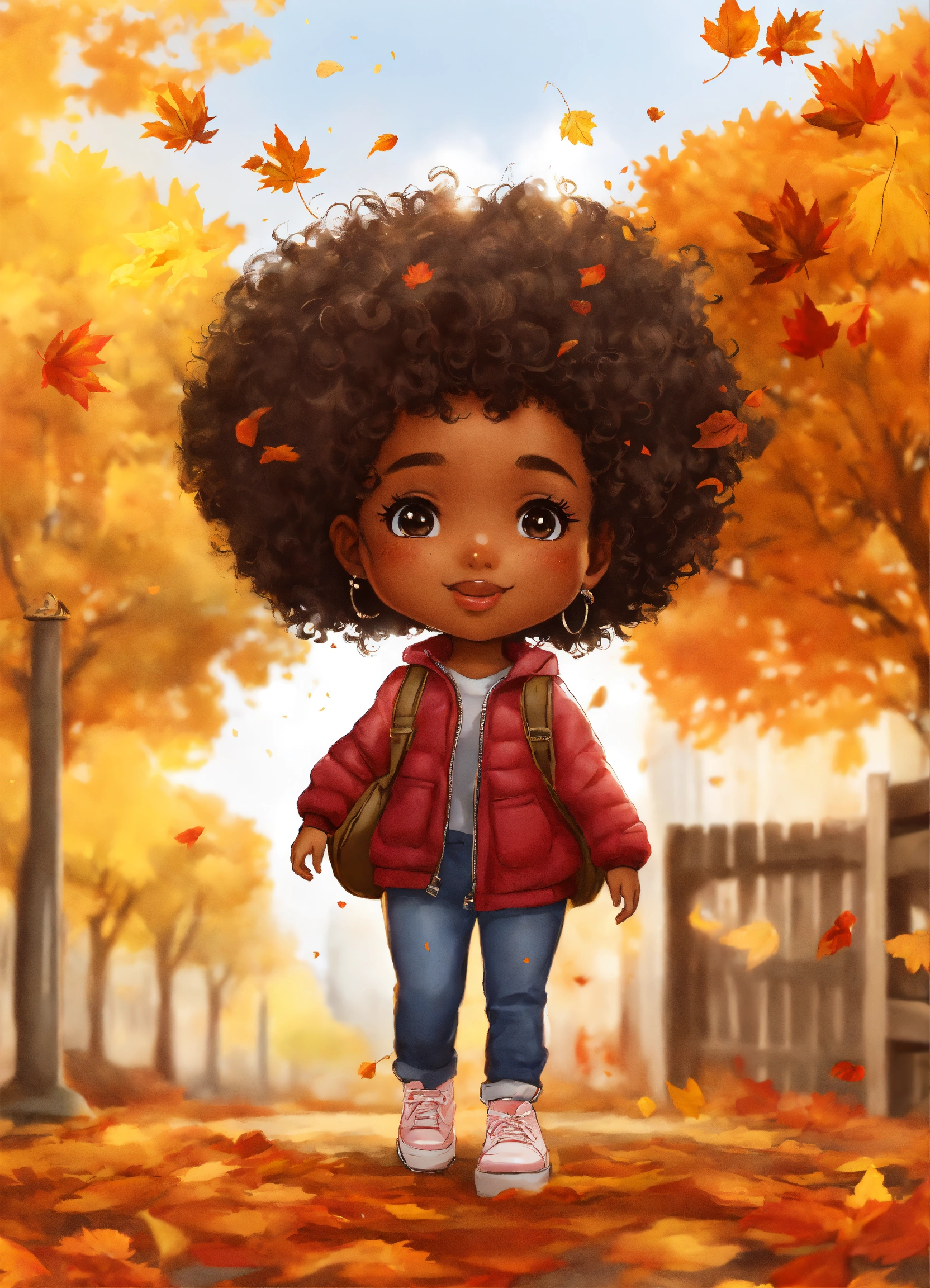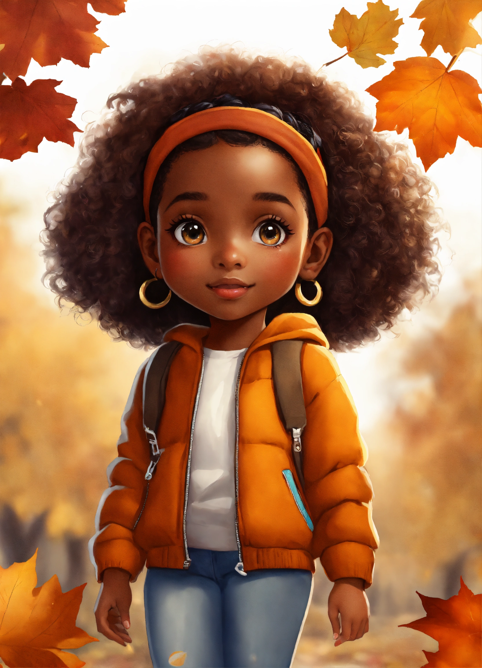 Cartoon cute little mixed black girl in autumn