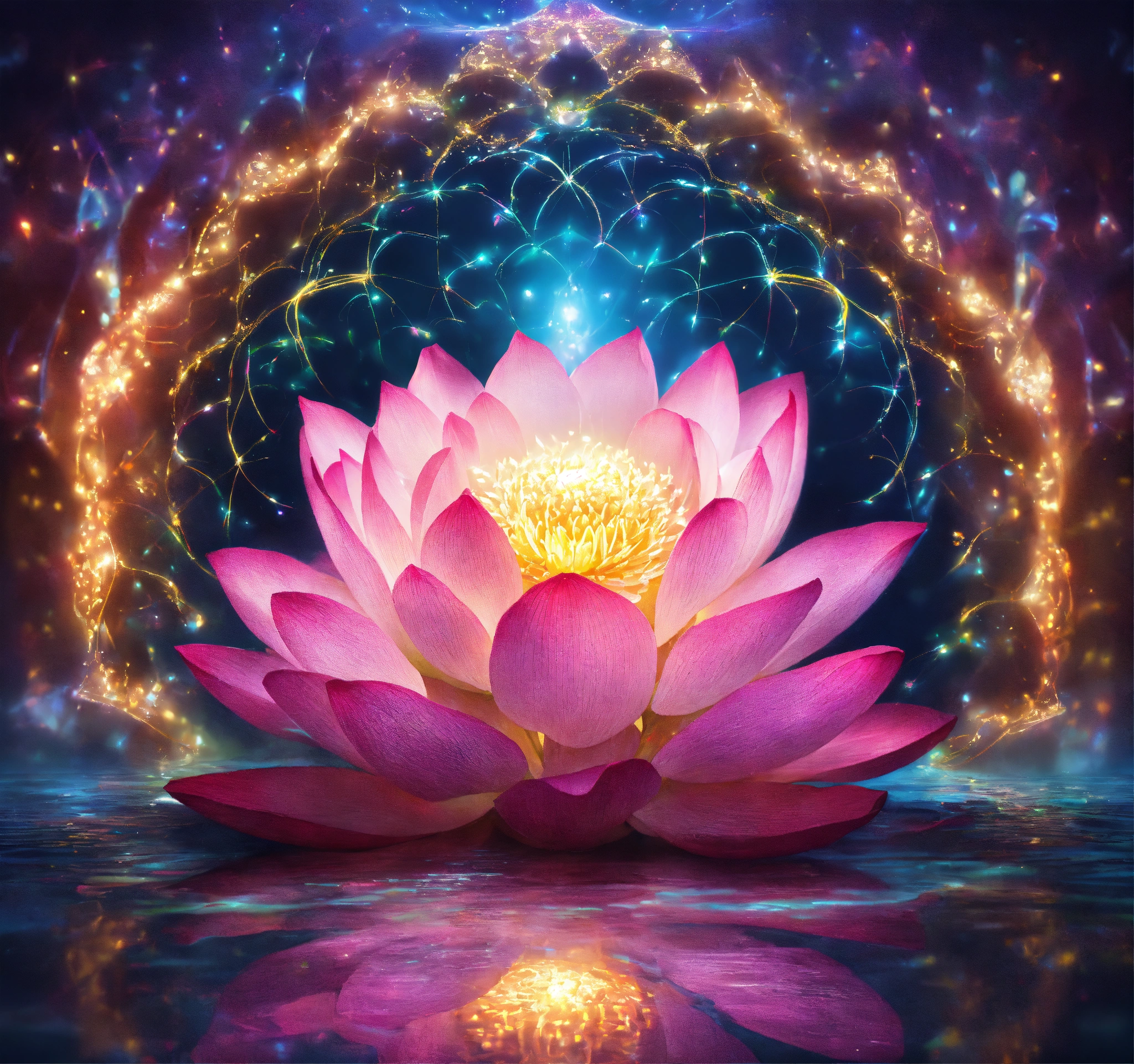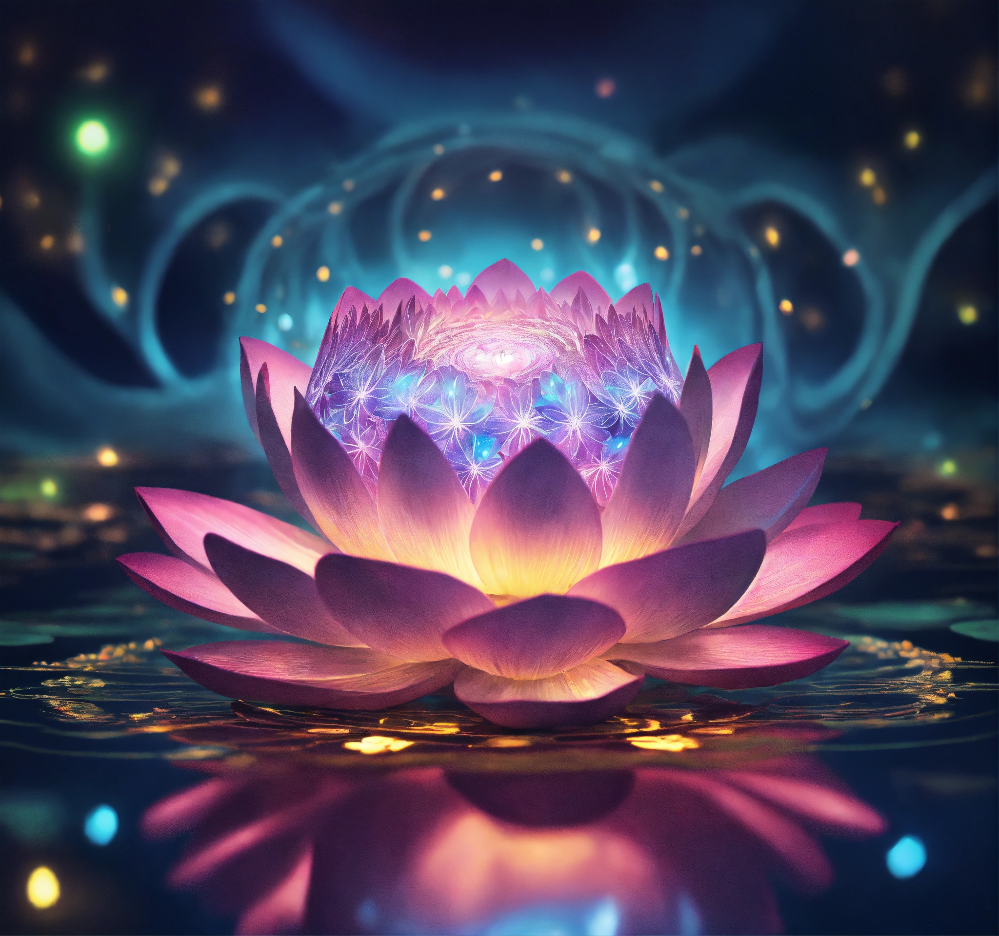 Brain with a mesmerizing mystic lotus inside it, the lotus is blooming with mesmerizing magical lights