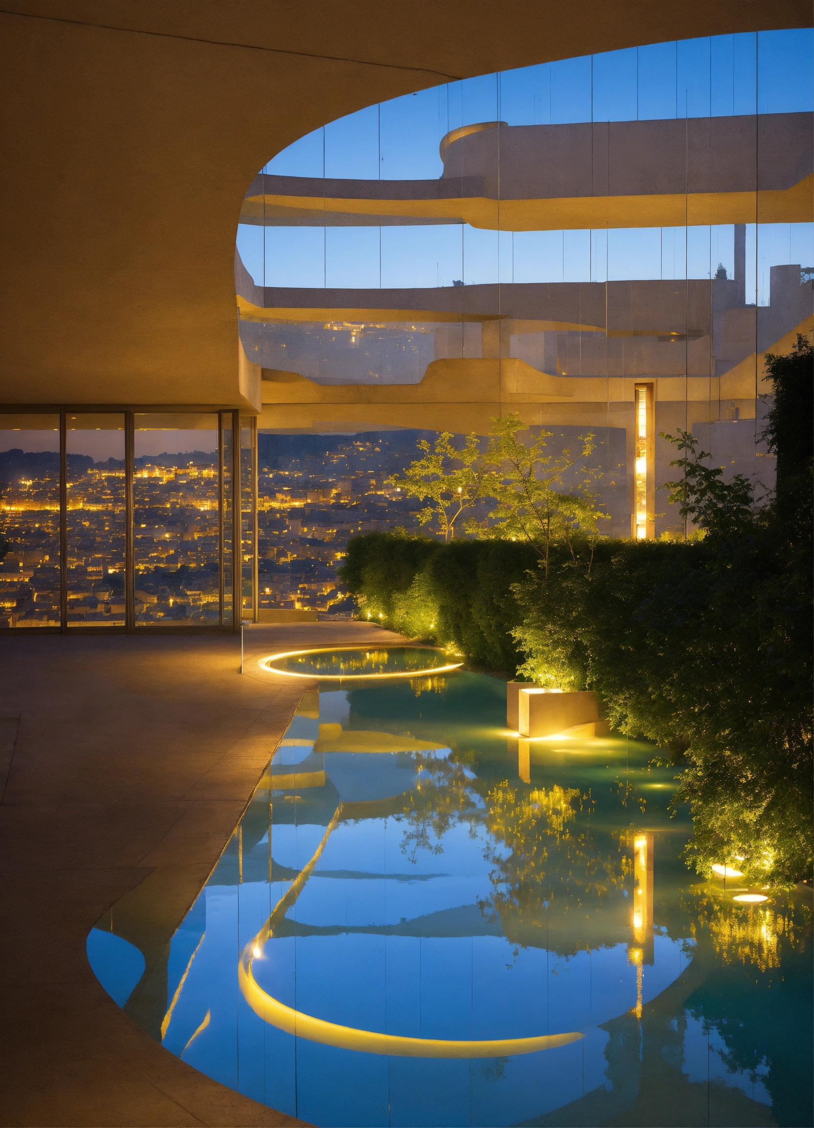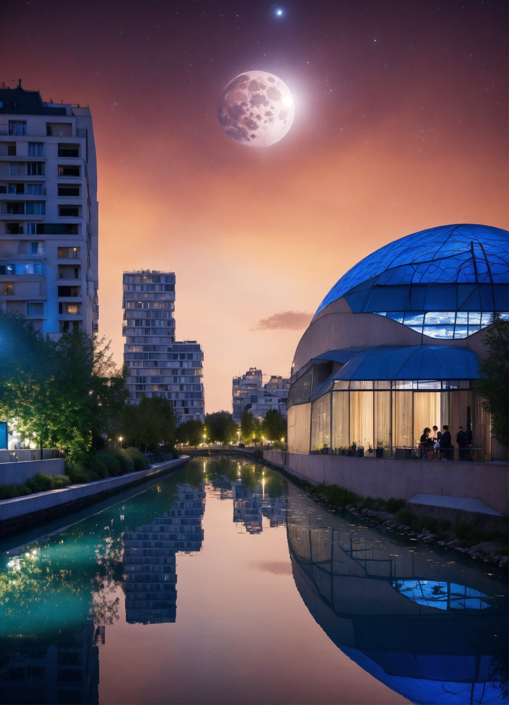 Au cœur d'une cité flottante, des bâtiments de verre et de lumière s'entremêlent harmonieusement. des canaux d'eau bleu azur serpentent à travers, reflétant les étoiles et la lune. chaque recoin de cette cité révèle des espaces soigneusement conçus des jardins suspendus, des terrasses ensoleillées, des salles de méditation calmes, tous imprégnés de l'amour, de la passion et de la détermination de ceux qui ont donné vie à cet environnement.
