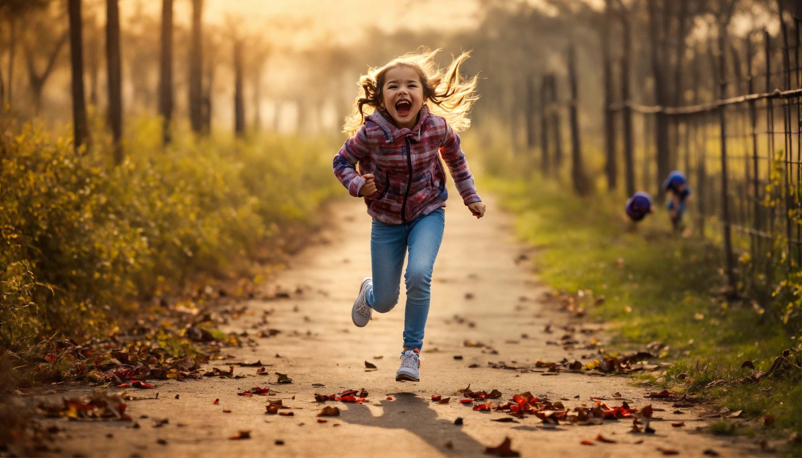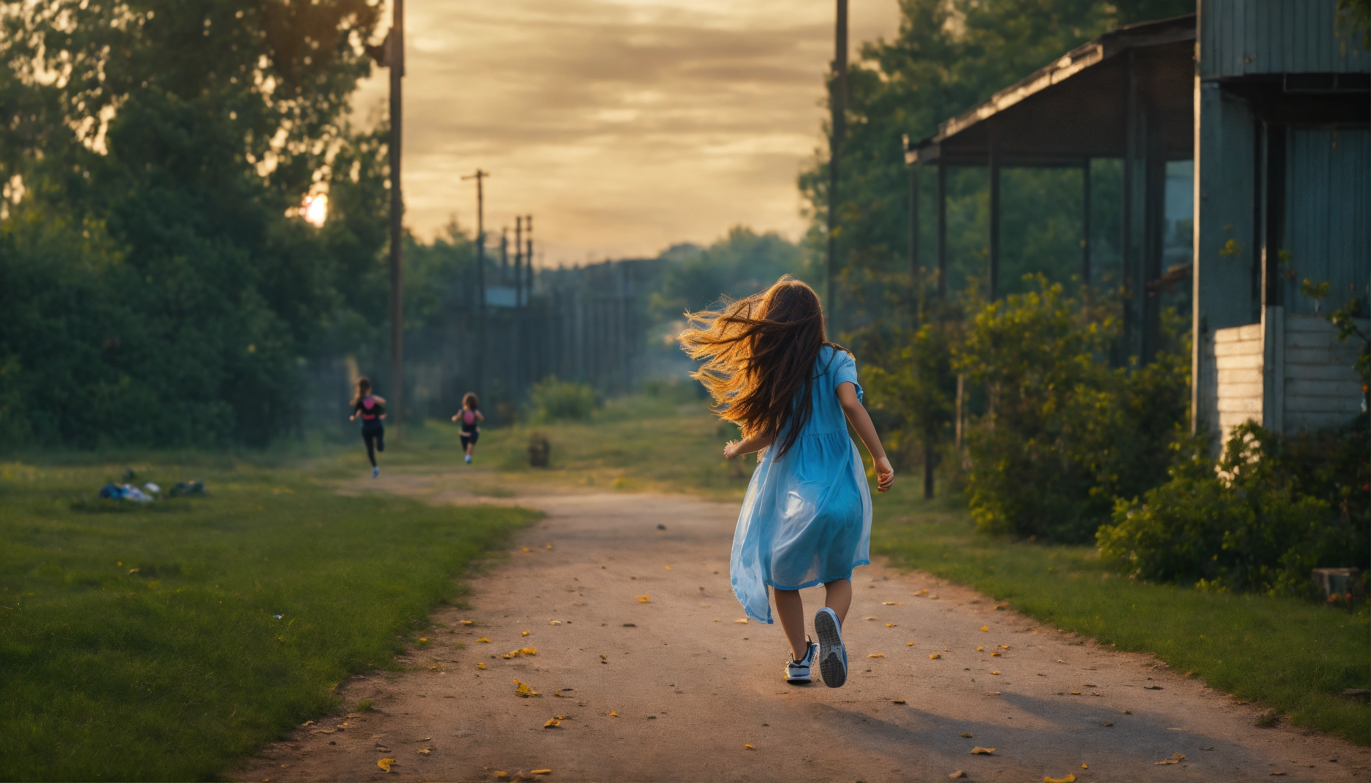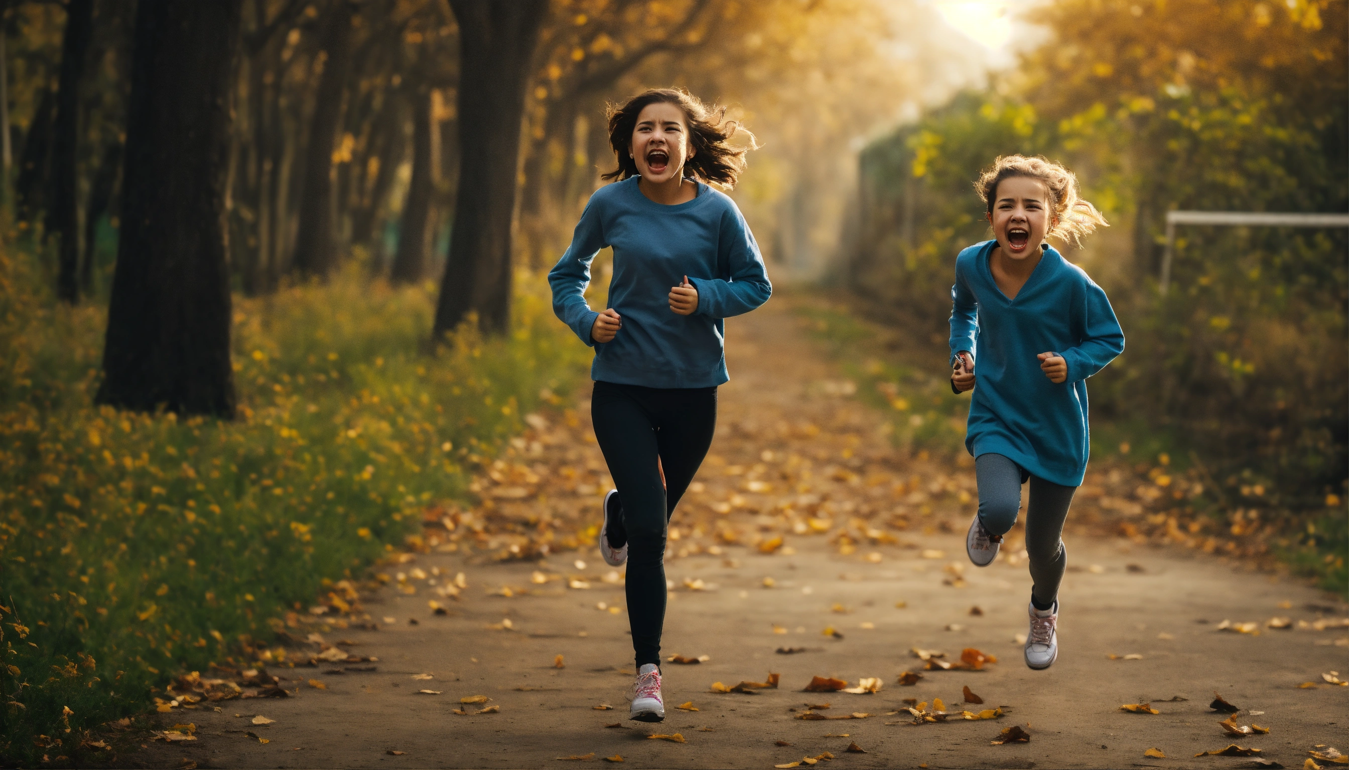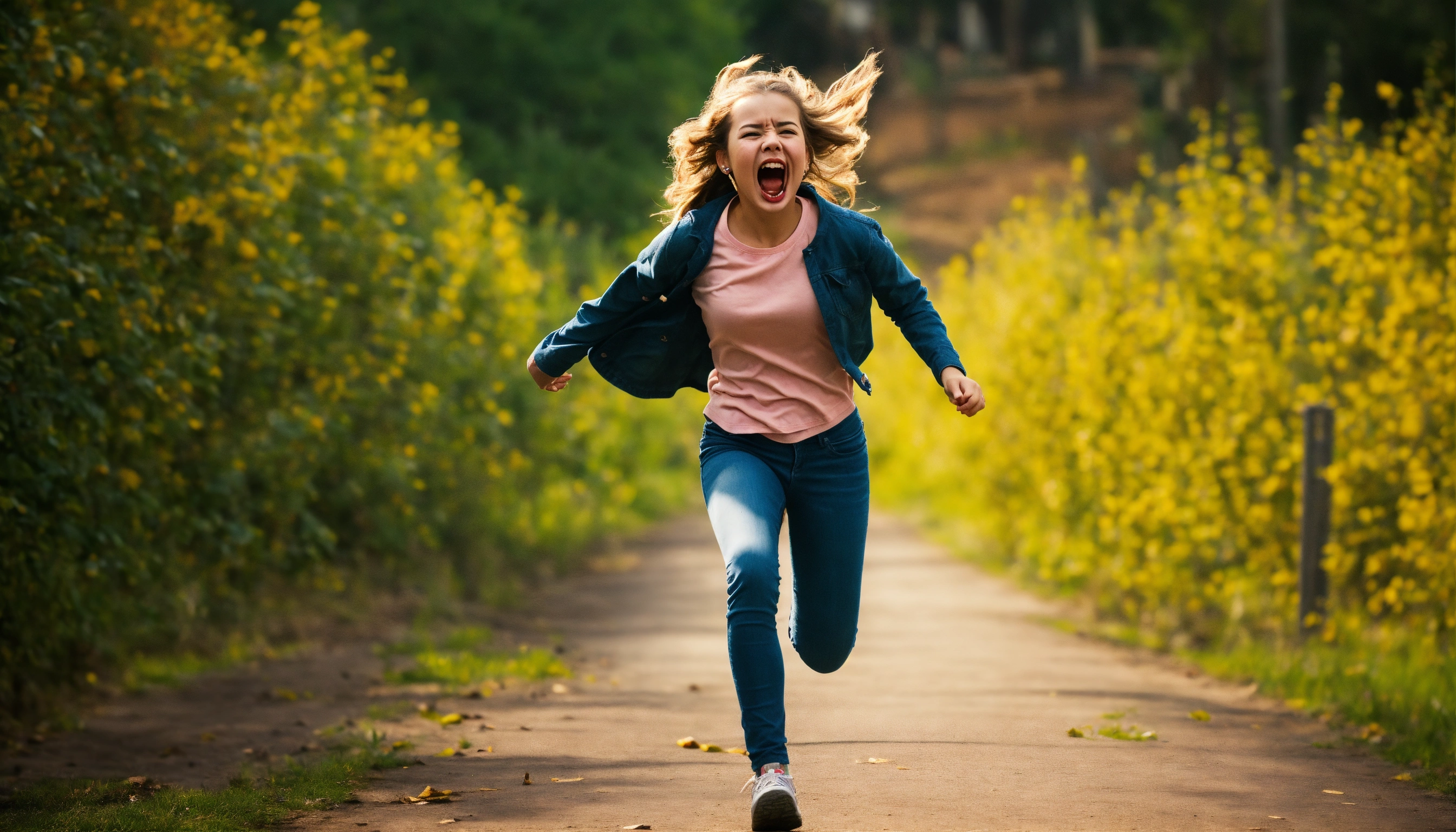 Screaming girl run away scared from the killer
