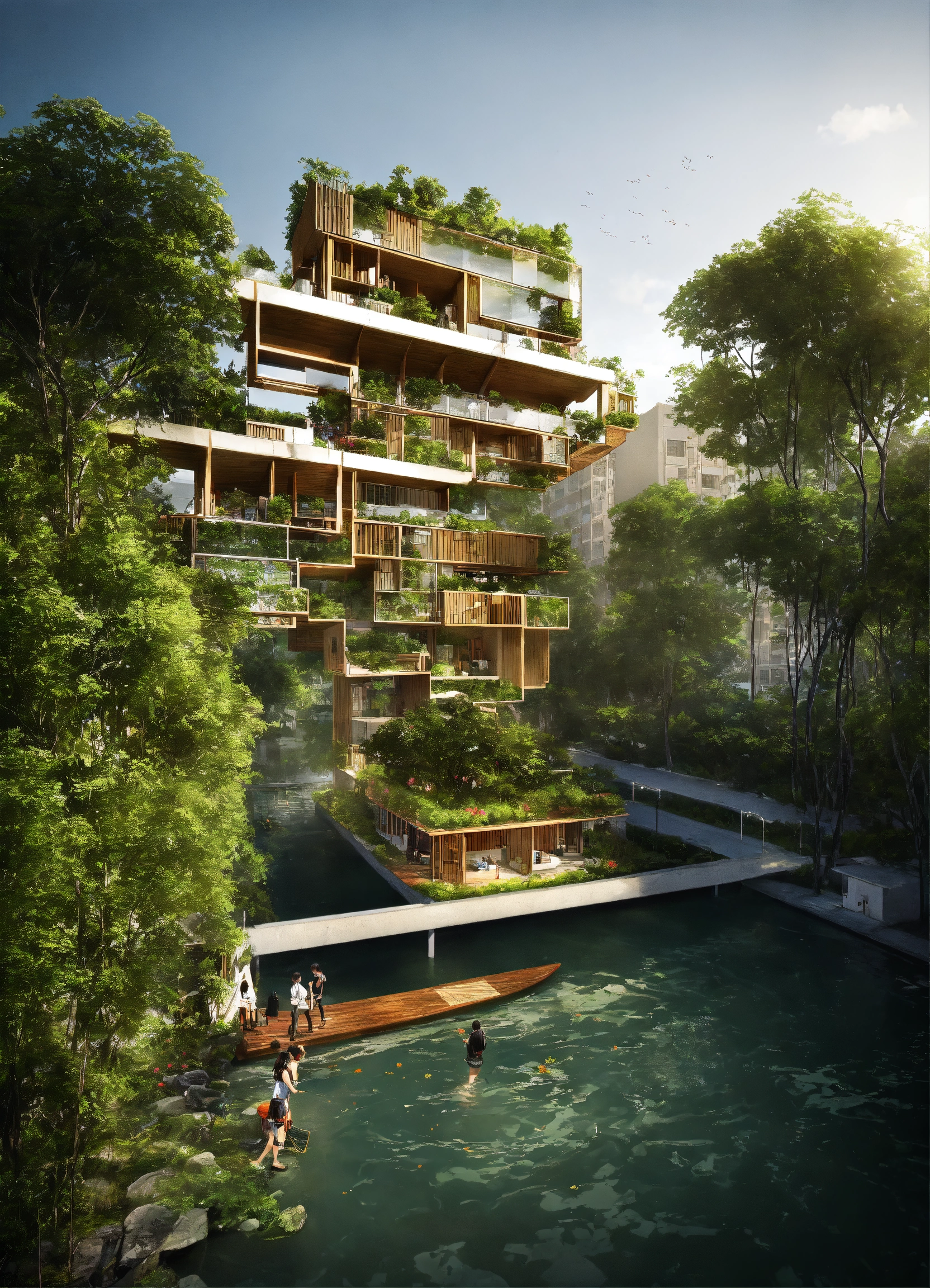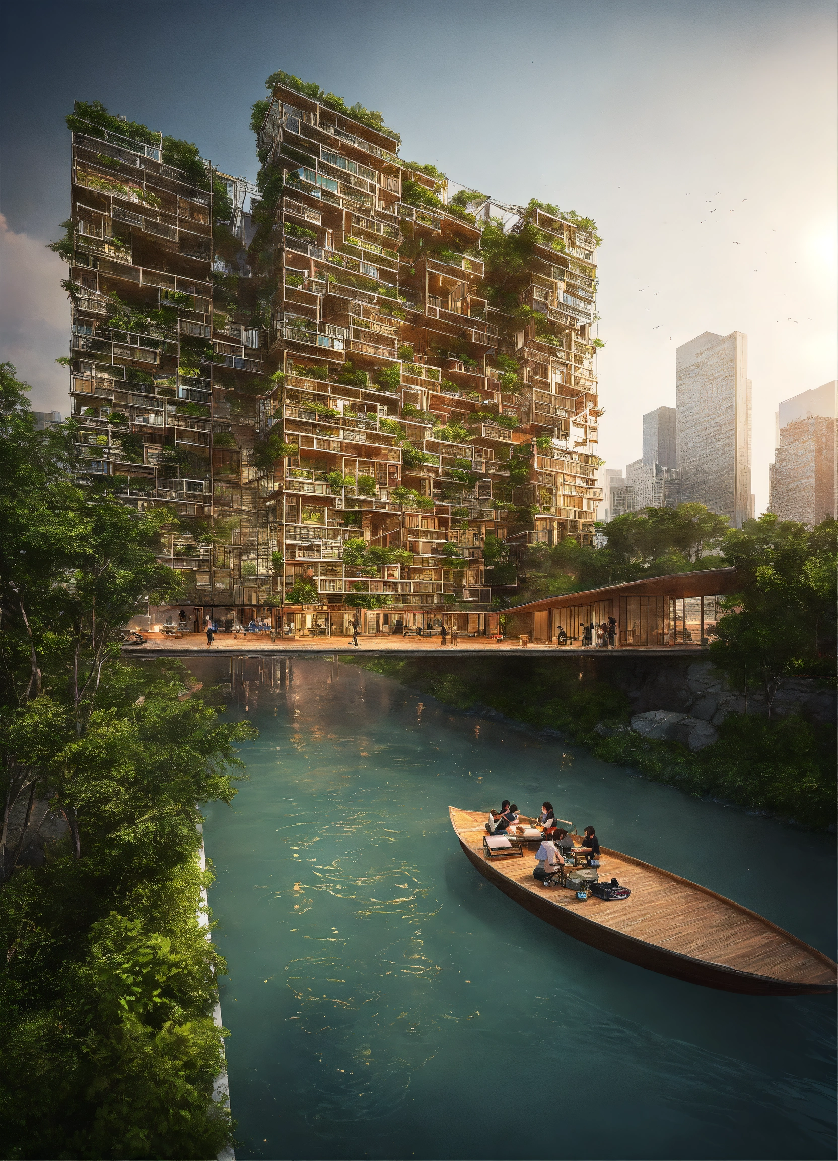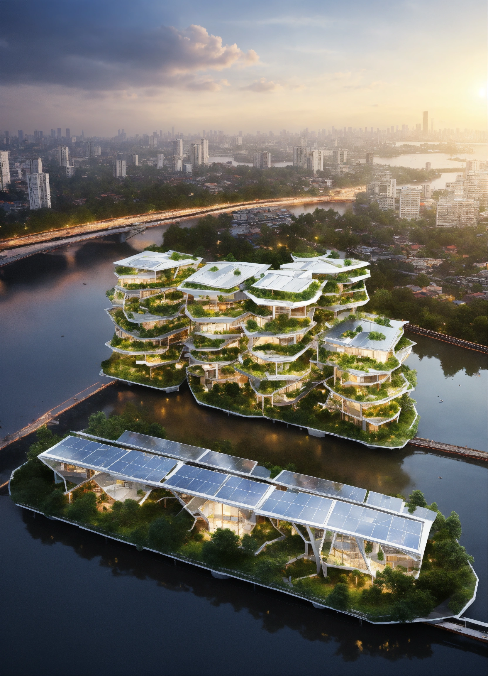 Imagine a cluster of floating organic modules in ho chi minh city in 2050 where the solution of establishing networks of vertical cities connected to each other into complexes of floating modules above the river is implemented to tackle the circumstance of affordable housing shortage. the networks would be situated on the thu thiem vacant land alongside the riverside of saigon river, economic centers. these are located throughout the city, providing a safe and supportive environment near entrepreneurship. the designs of these cities draw inspiration from the essence of modern architecture. the energy systems use renewable energy such as passive solar design to address the problem of global warming. it uses natural materials such as bamboo, wood to promote a sense of connection with nature while utilizing metal and concrete to amplify the modernity. the project utilizes innovative design approach such as modular design, parametric design, pre-fabricated.