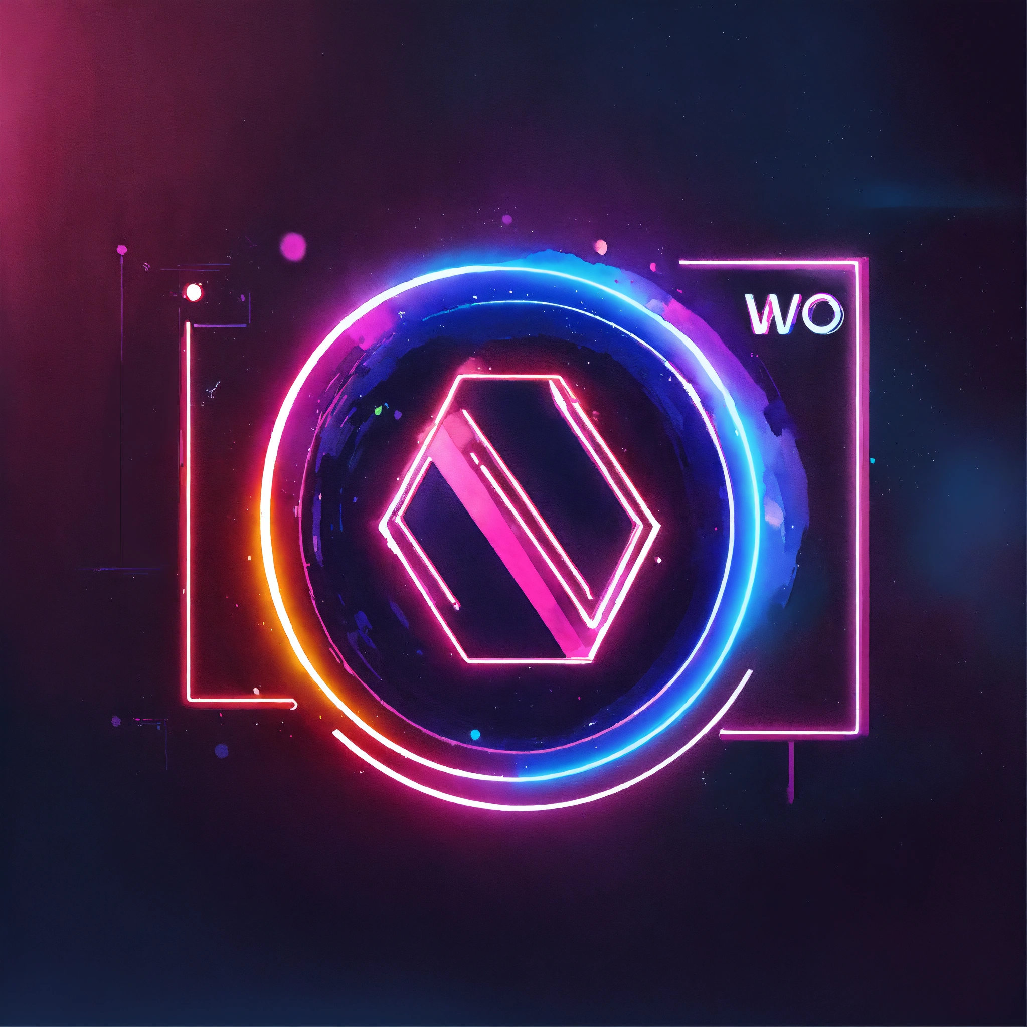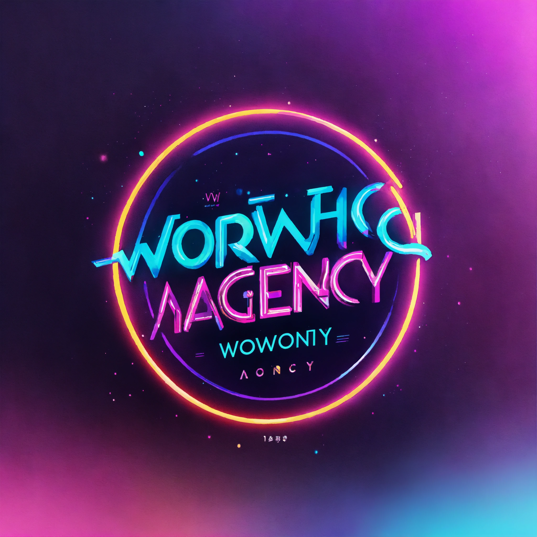 Logo design for the marketing agency "wowhow", incorporating neon lights, modern and innovative style, watercolor illustrations, illustrative approach, clean lines, negative space, visually striking composition, industry-relevant symbolism, high-resolution digital artwork, scalable vector format