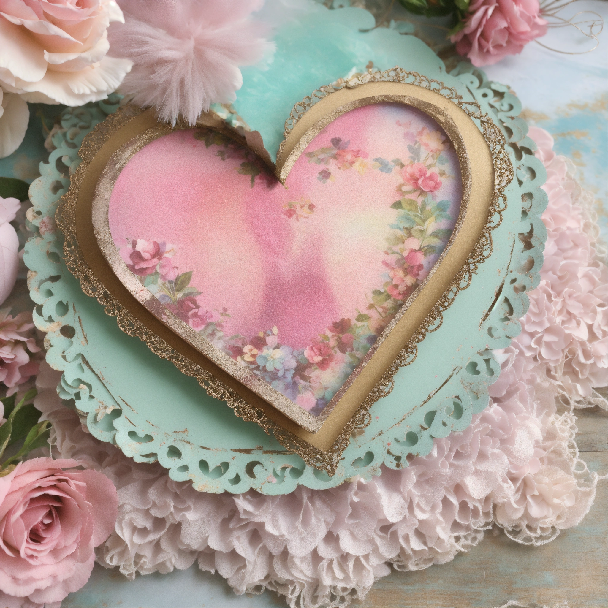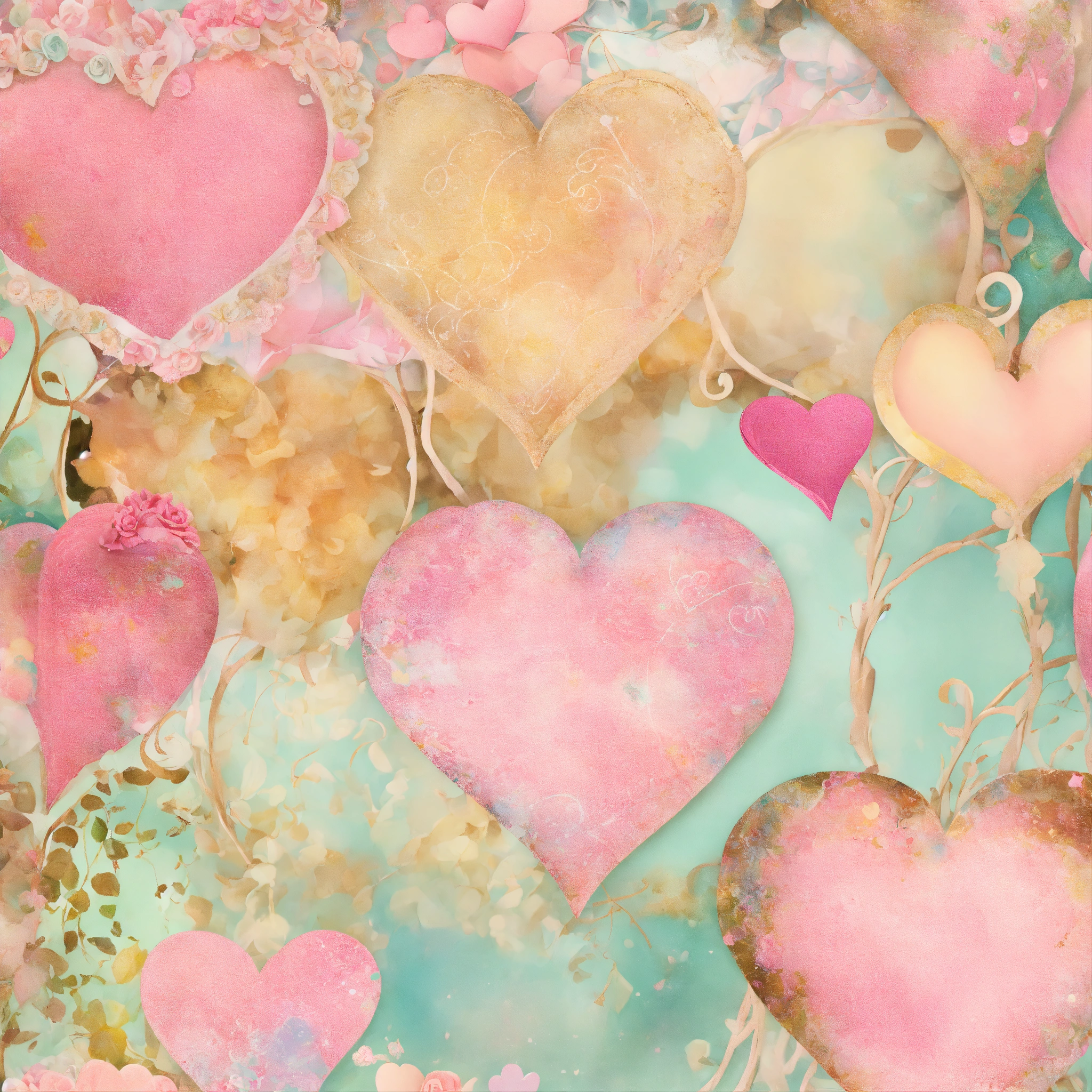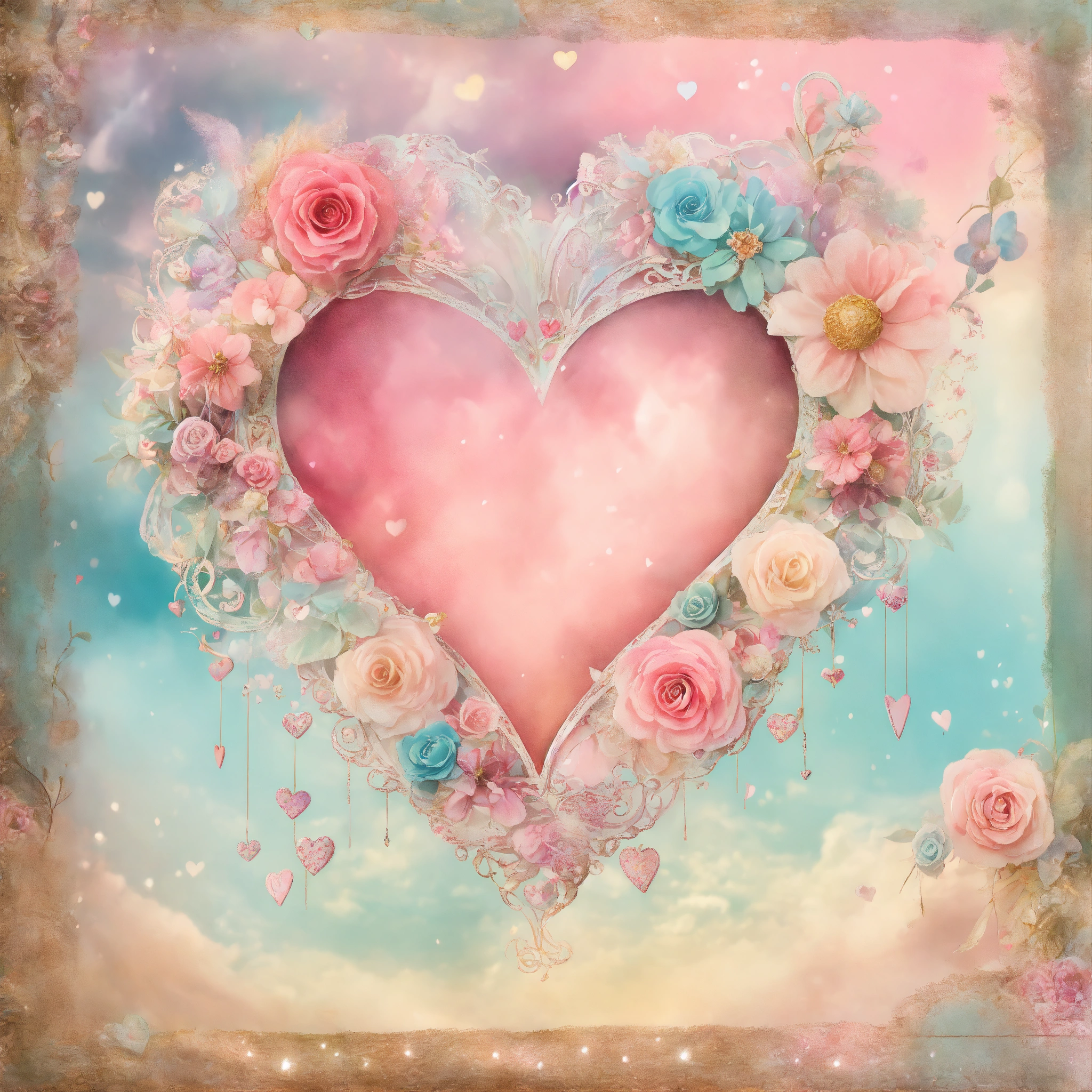 Shabby chic dreamy mist pastel junk journals valentines hearts swirling magical fairytale abstract art style