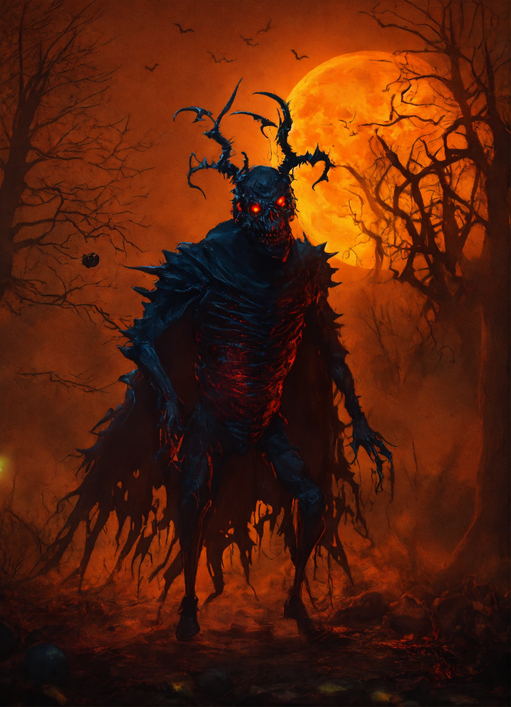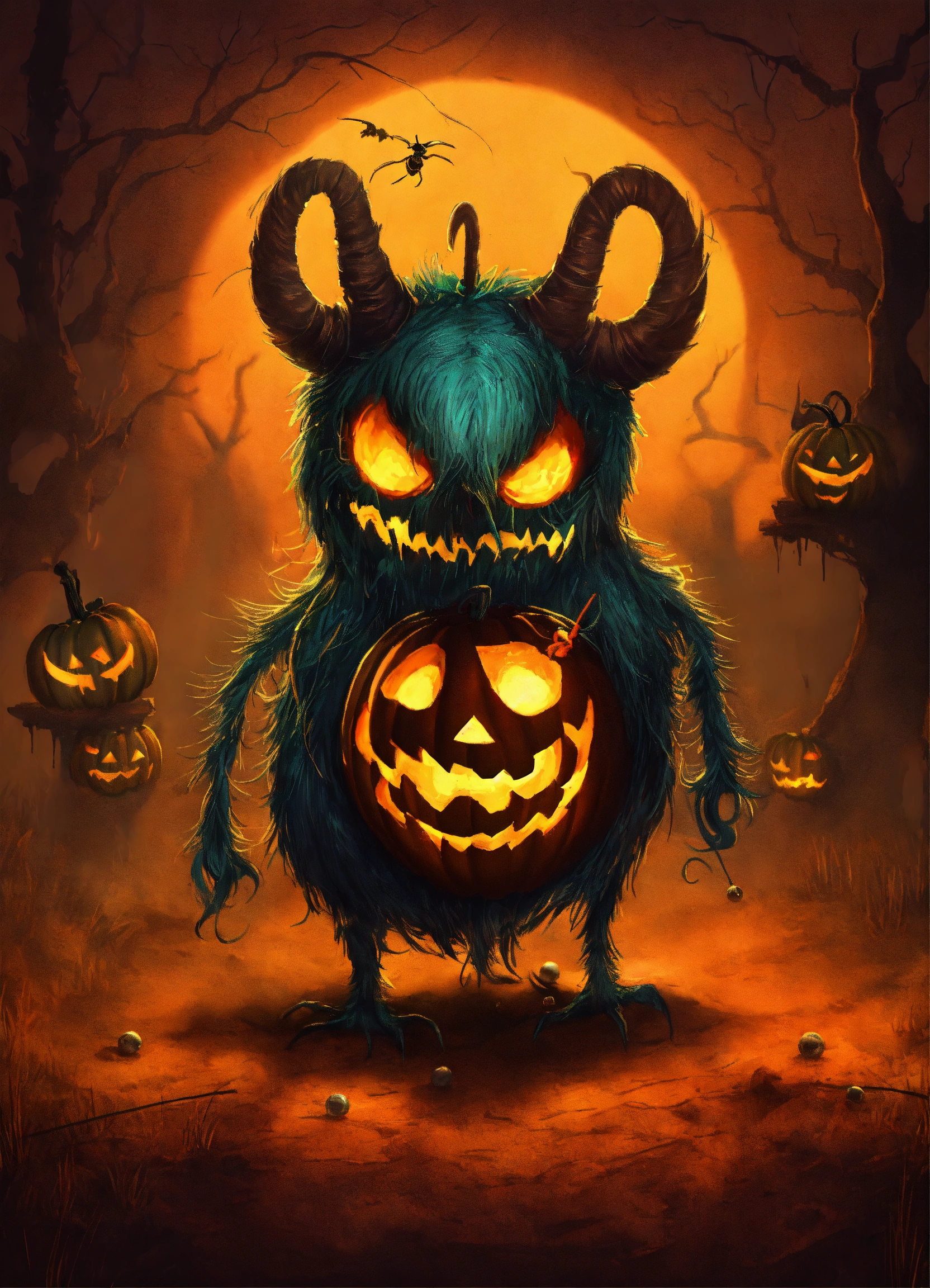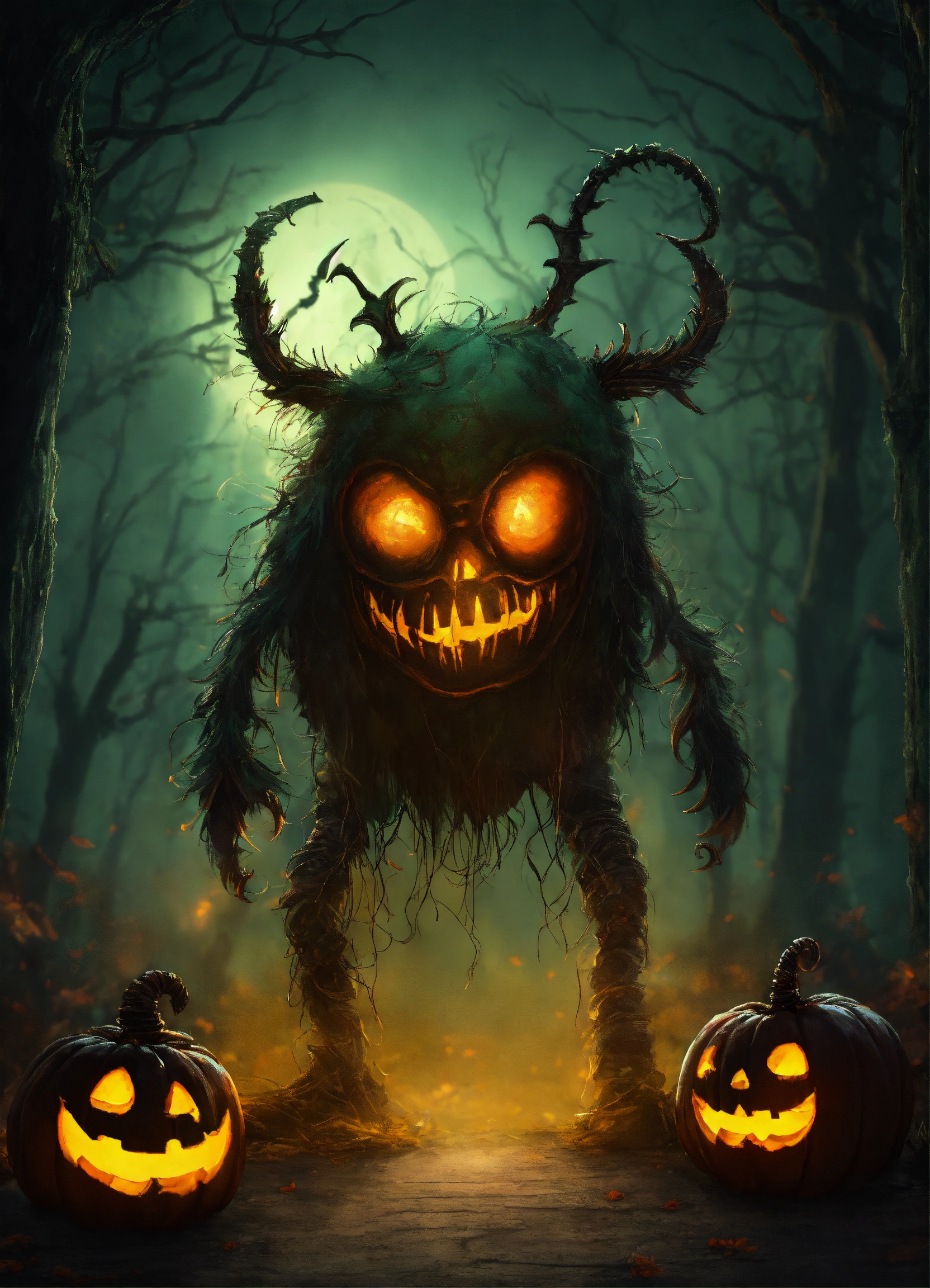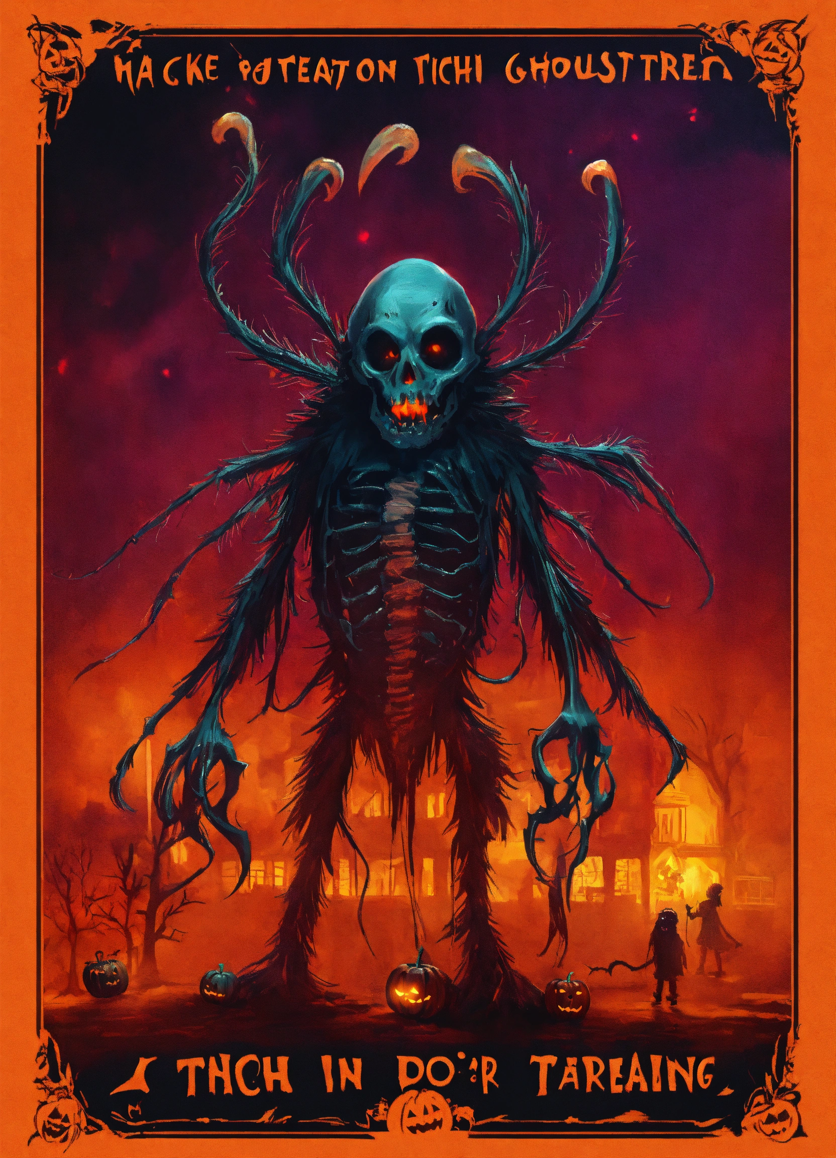 Create for me an image of a spine-tingling tick or treat in ghoulish monster