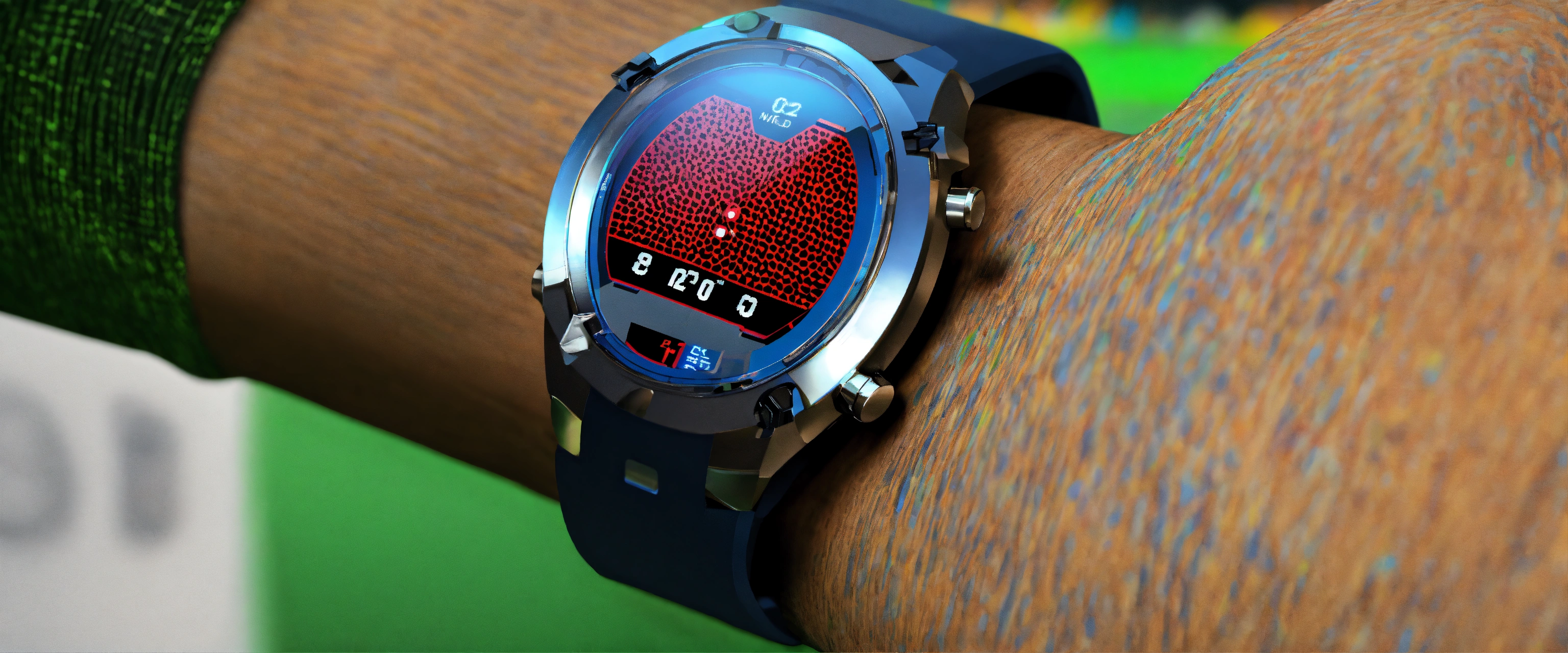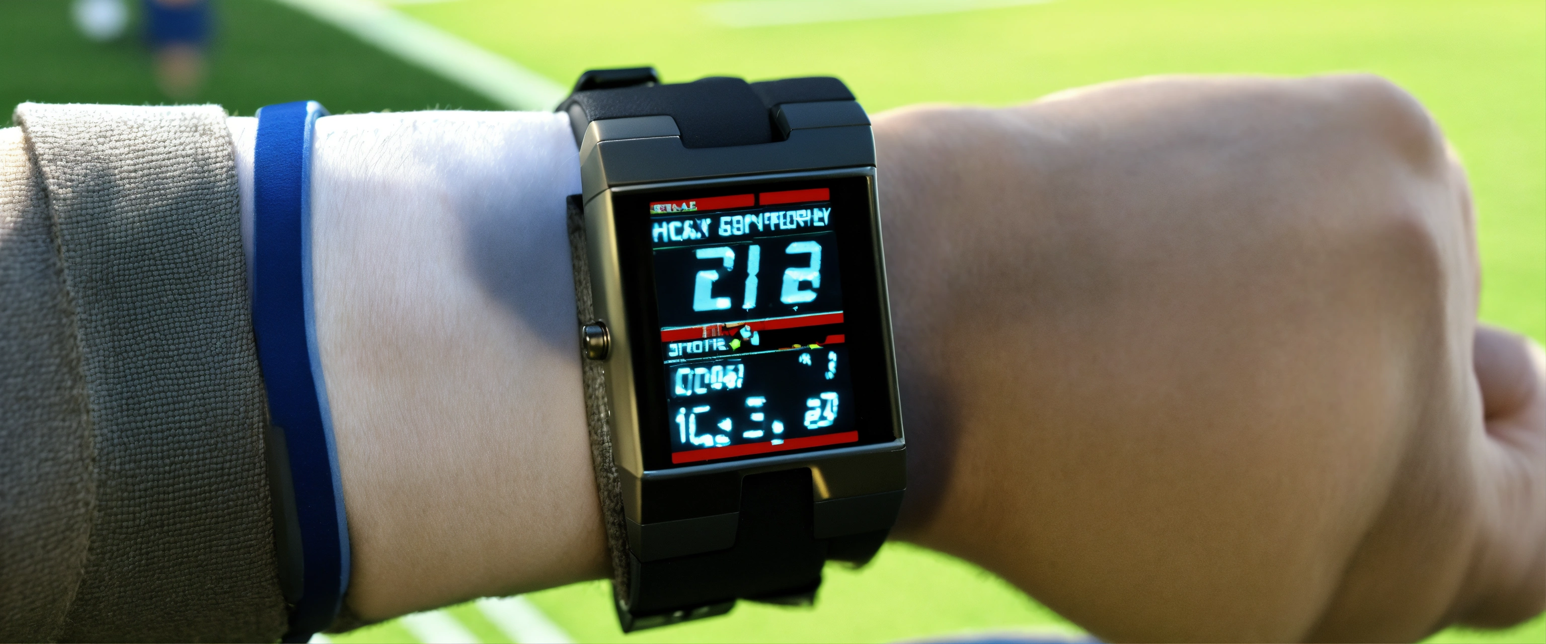 Digital watch on the wrist of a football referee during the match 3d simple model