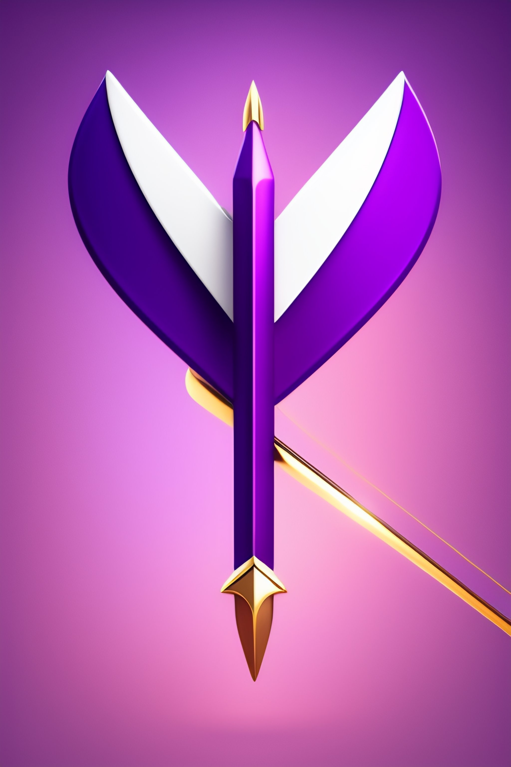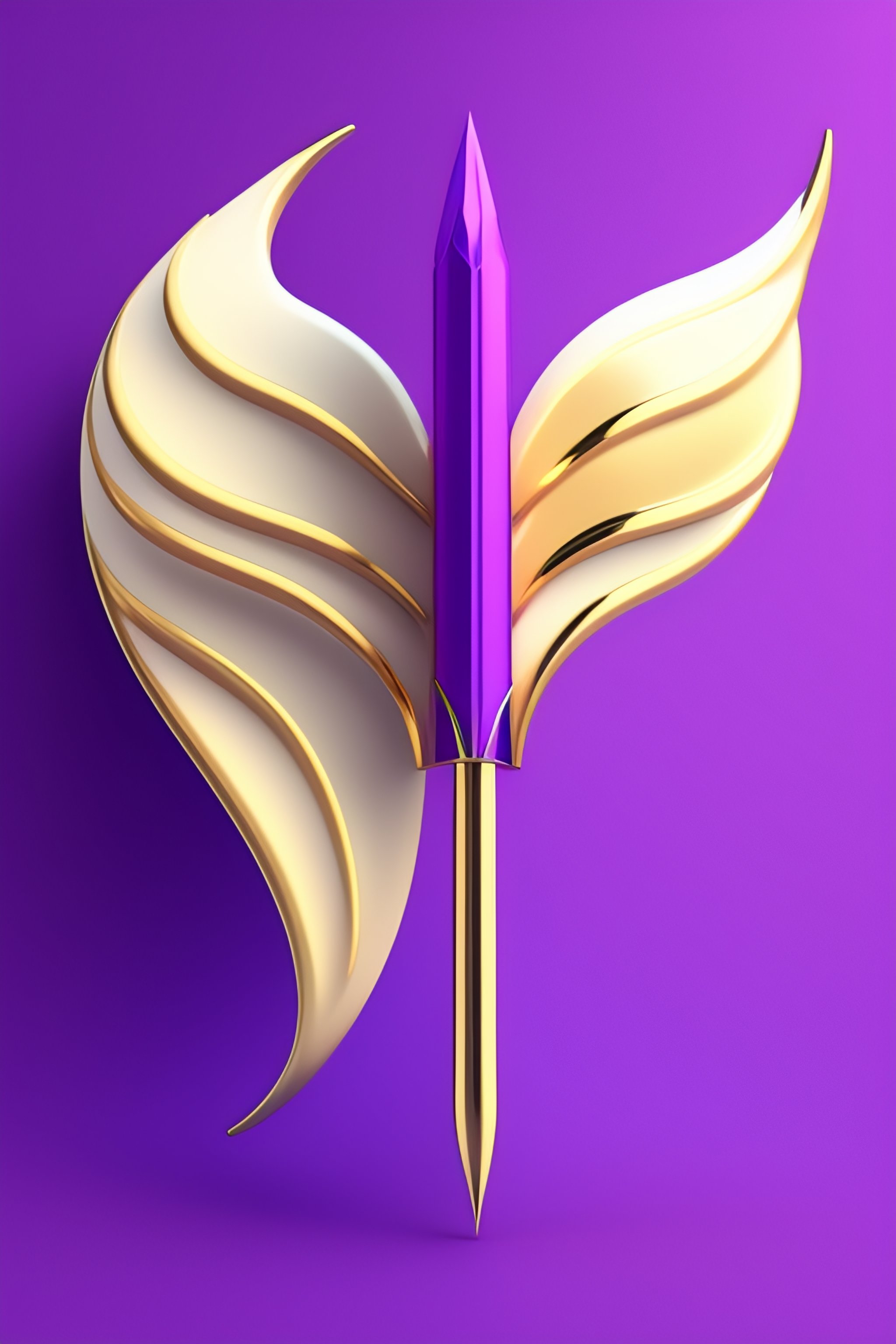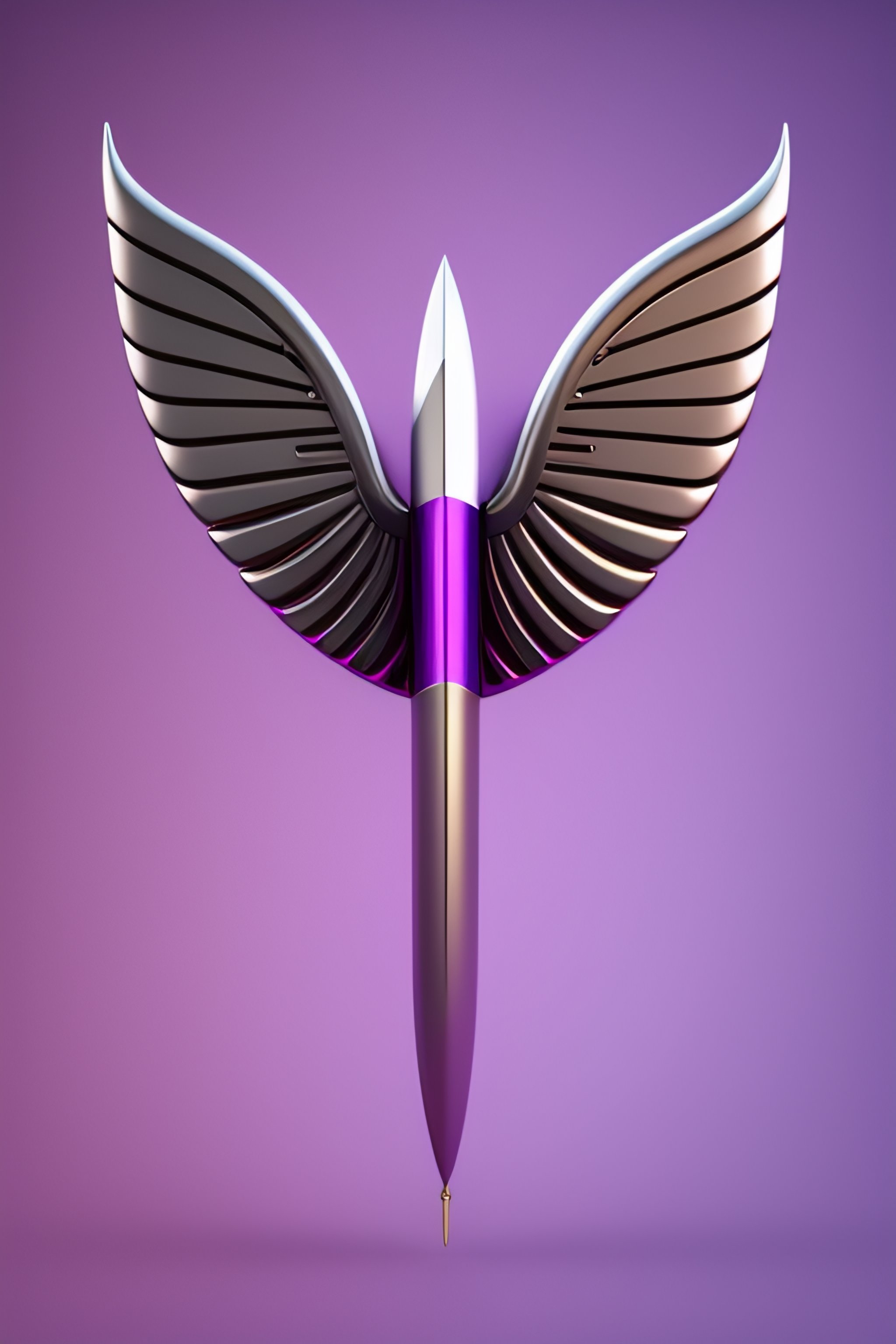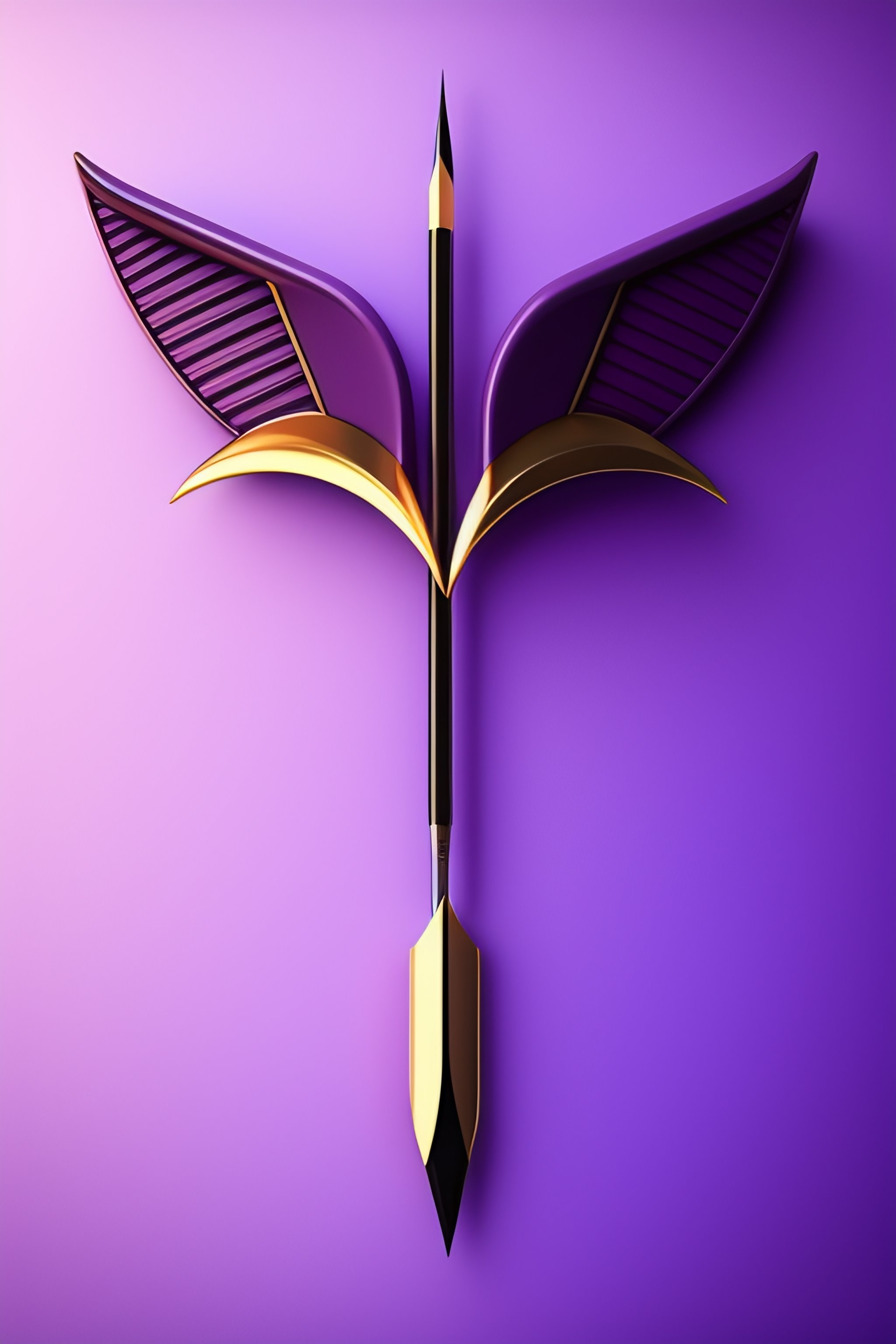 3d icon render of a wing, arrow quiver, magic wand, majestic, perspective, legendary, mythology, isolated over a white background, no background, clean lines, angle view, symmetry, linear, depth, purple monochrome, graphic design, user interface, modern, futuristic, brand, logo, computer generated art