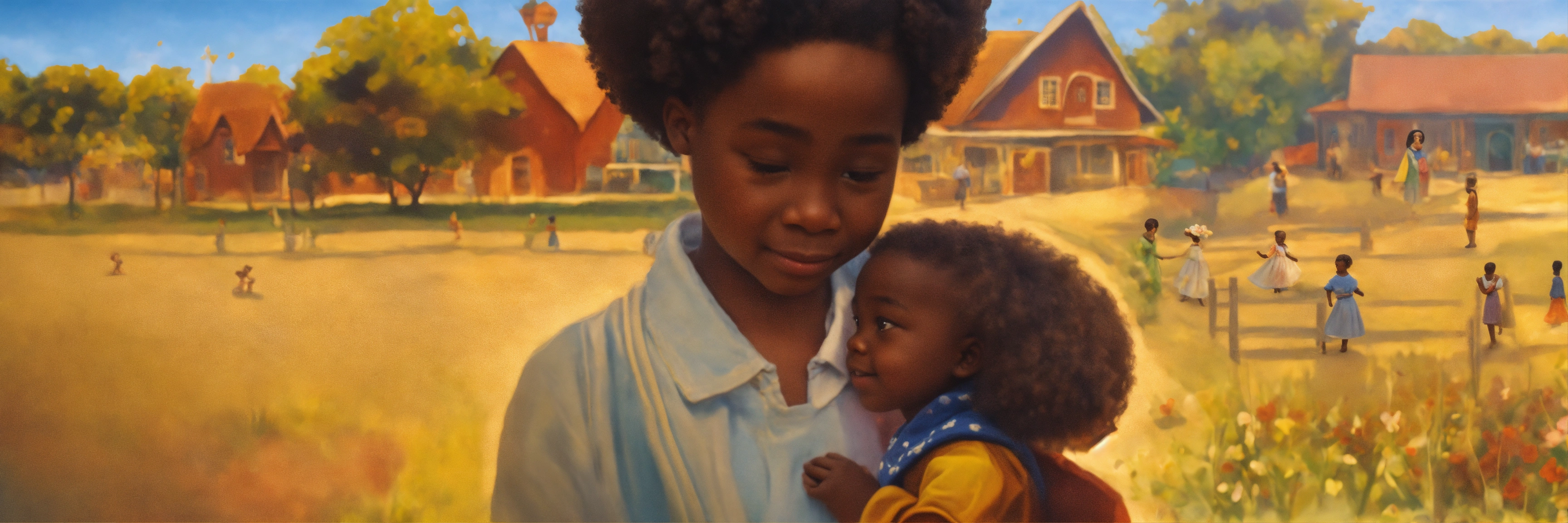 Oba, the little african-american boy, holding mata, his african-american doll lived happily ever after, in a city where love, uniqueness, and acceptance were the cornerstones of their lives.
