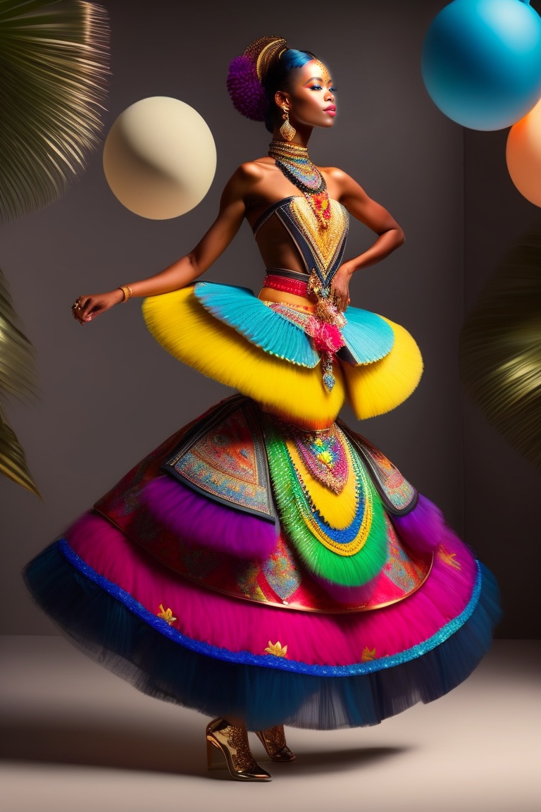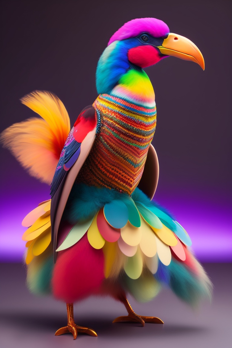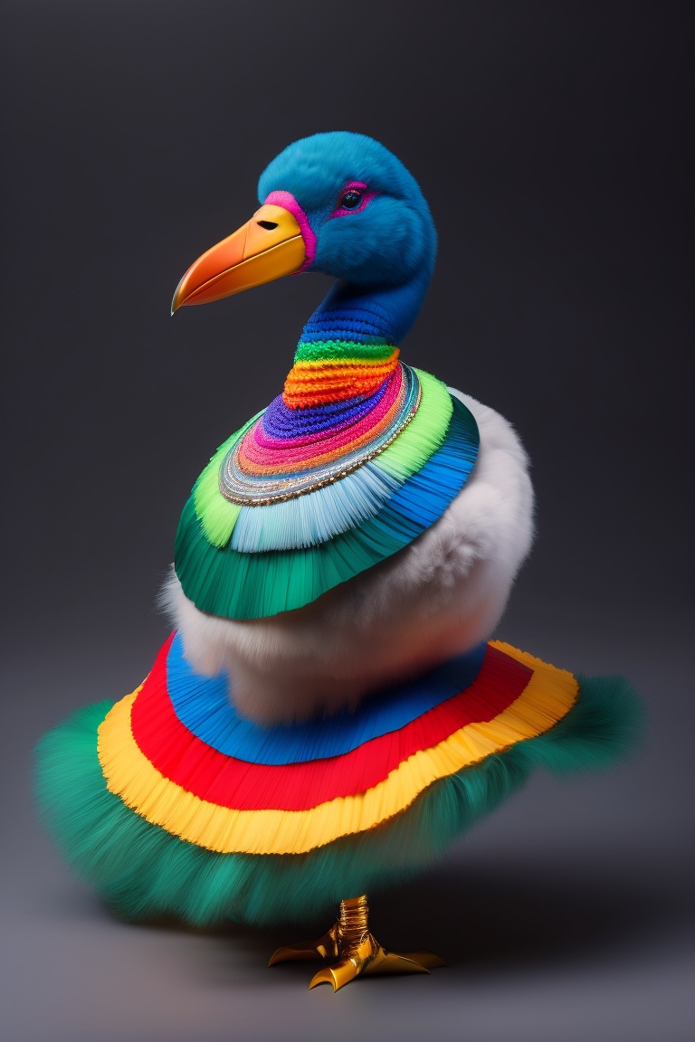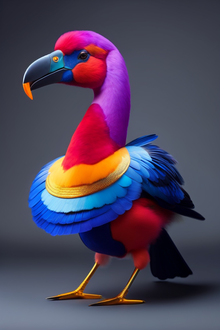 Envision mauritius as a mythical creature—a mysterious dodo wandering the pristine beaches, capturing the unique biodiversity and tropical paradise of the country, sega dance costume style, using vibrant fabrics and sequins to create a colorful and festive image, --v 5.2 --style raw
